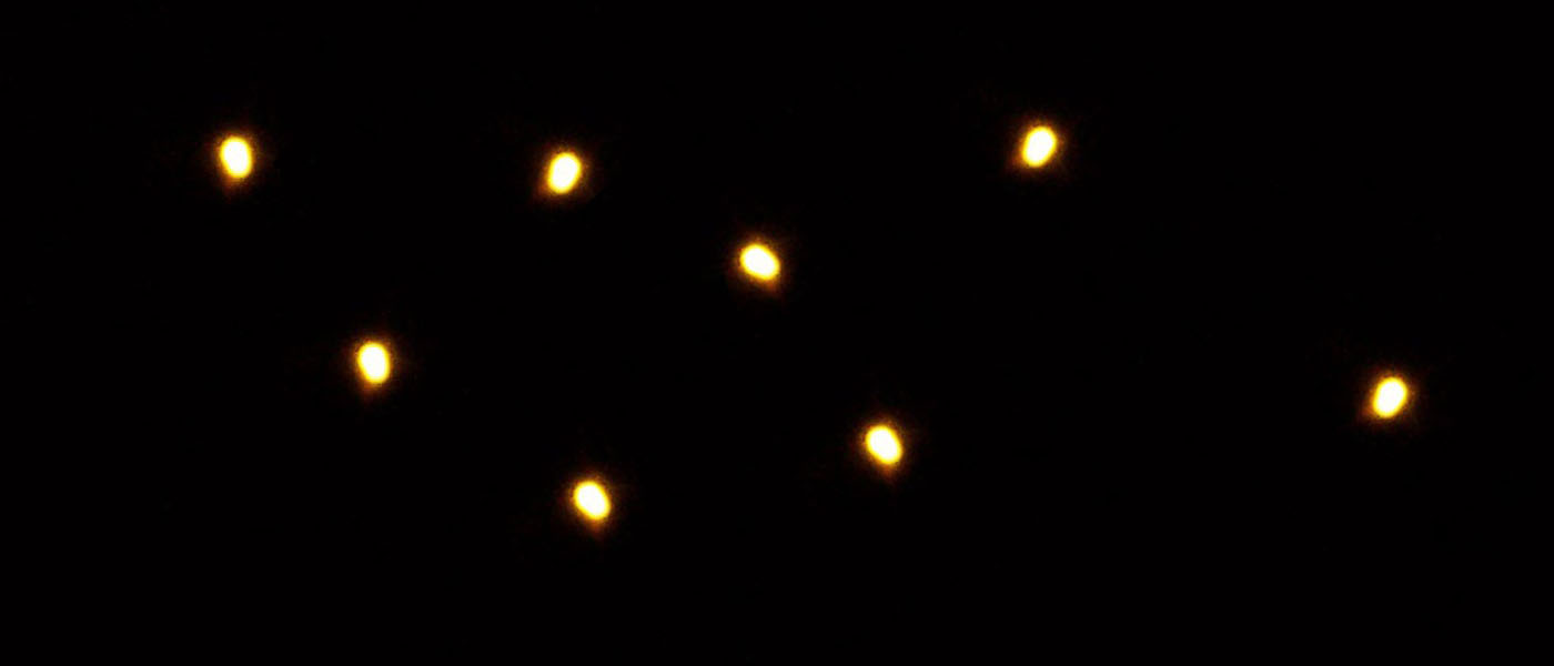 “The large orbs were about the color of the moon. At first count there were seven; but after recounting I’m positive there were a total of eight of them.”