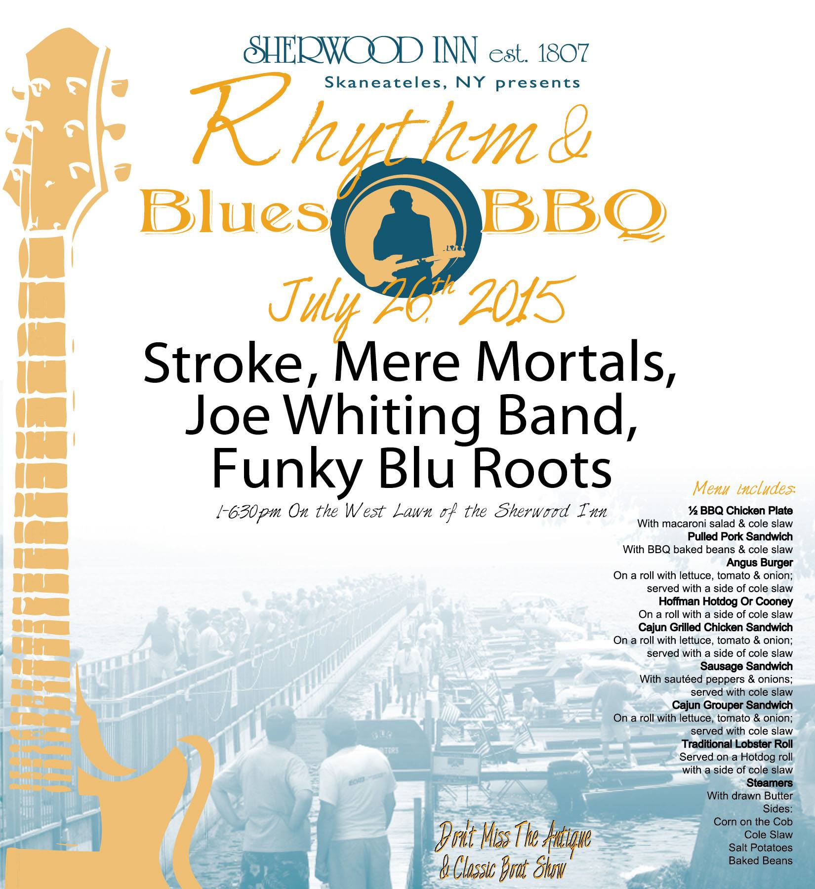 To compliment the Antique & Classic Boat Show, The Sherwood Inn is holding their annual barbecue event on the west lawn. Come and enjoy some free live music from Stroke, Mere Mortals, Funky Blu Roots, and Joe Whiting Band while enjoying some delicious menu items.
