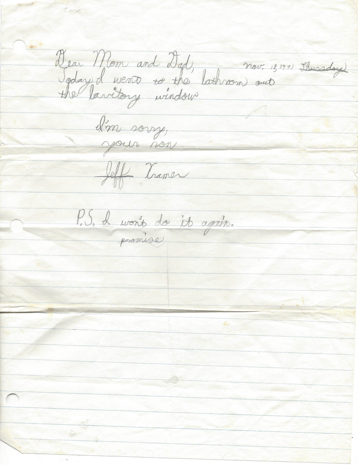 I was embarrassed and my mom was bewildered, but there’s a statute of limitations on these things, and I got on with my life. Never did I imagine that — in a foreshadowing of the Internet Age, where unseemly posts can live forever — my parents would save the letter. Yet there it was, in a faded lockbox filled with other family mementos, tucked in a white legal envelope labeled “Jeff’s bits of information.”