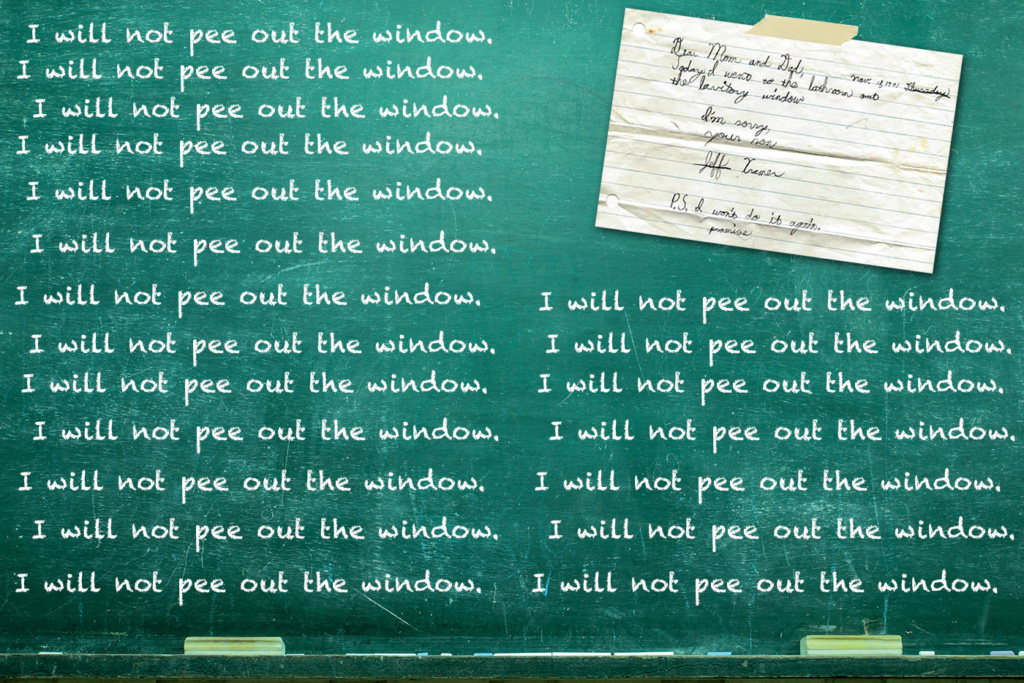 Ever alert for opportunities to deflect attention from his own mischievous ways, Boyd affected the traumatized look of an innocent who has just witnessed a creepy clown in a trench coat mounting a goat. He promptly ratted me out to a teaching assistant. From there it was a short trip to the principal’s office. I was no stranger to that setting, but this time it felt more serious.