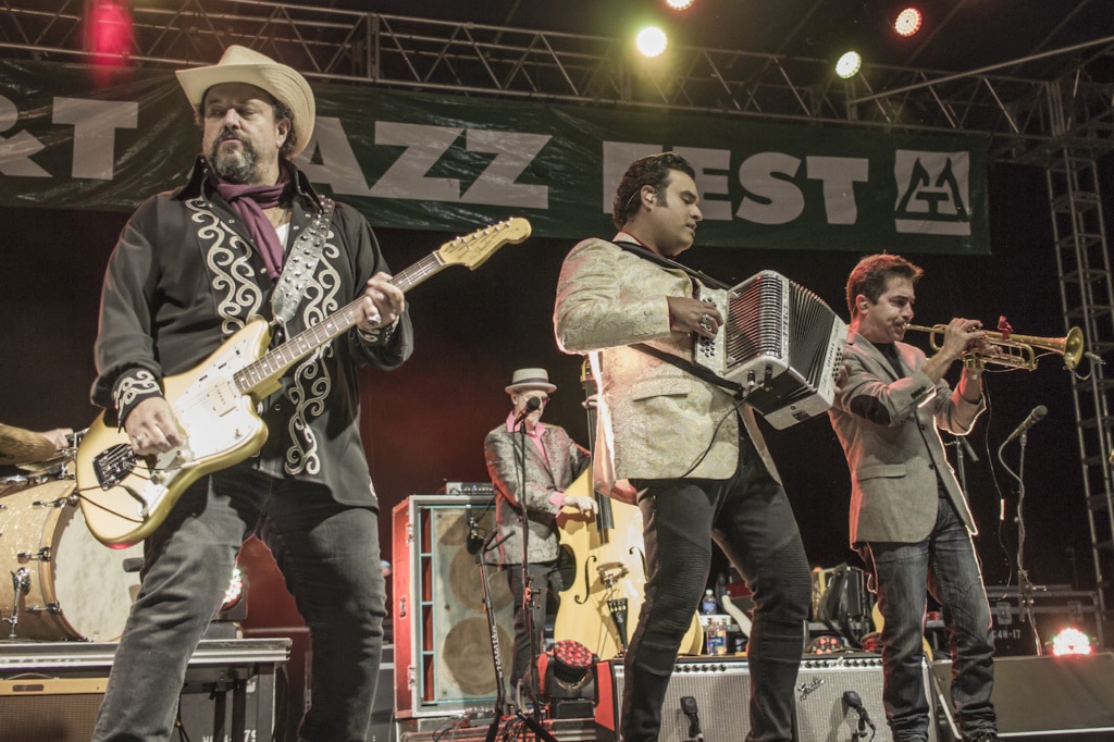 There was jazz of several stripes, of course, and in an essential way, it characterized, if not defined, the two-day event. Earlier on Saturday’s schedule, the Rebirth Brass Band, a staple at the Maple Leaf Tavern in New Orleans held forth, pounding out the pomp and strut of the Mardi Gras. Essentially a second-line street band, Rebirth’s non-electric music carried an accelerating march cadence with the joyous, celebratory thump of a parade that has no end.