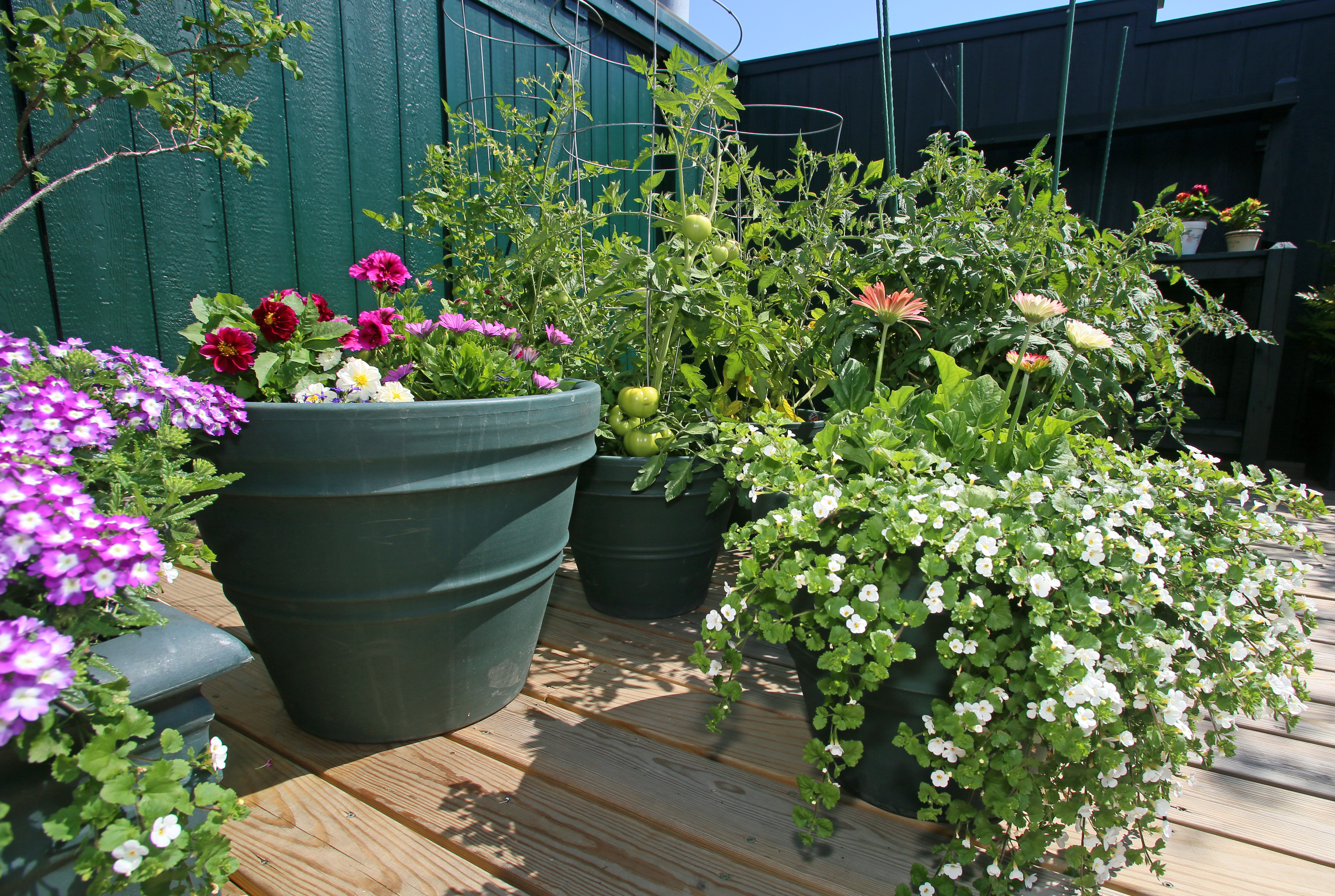 The Goodmans have planted trees in pots, including two lilac trees planted nearly 20 years ago and a spring-flowering crabapple. Every spring, the Goodmans find bird nests in the arborvitae. They grow perennials in pots, including roses, daylillies, astilbe and hydrangea.