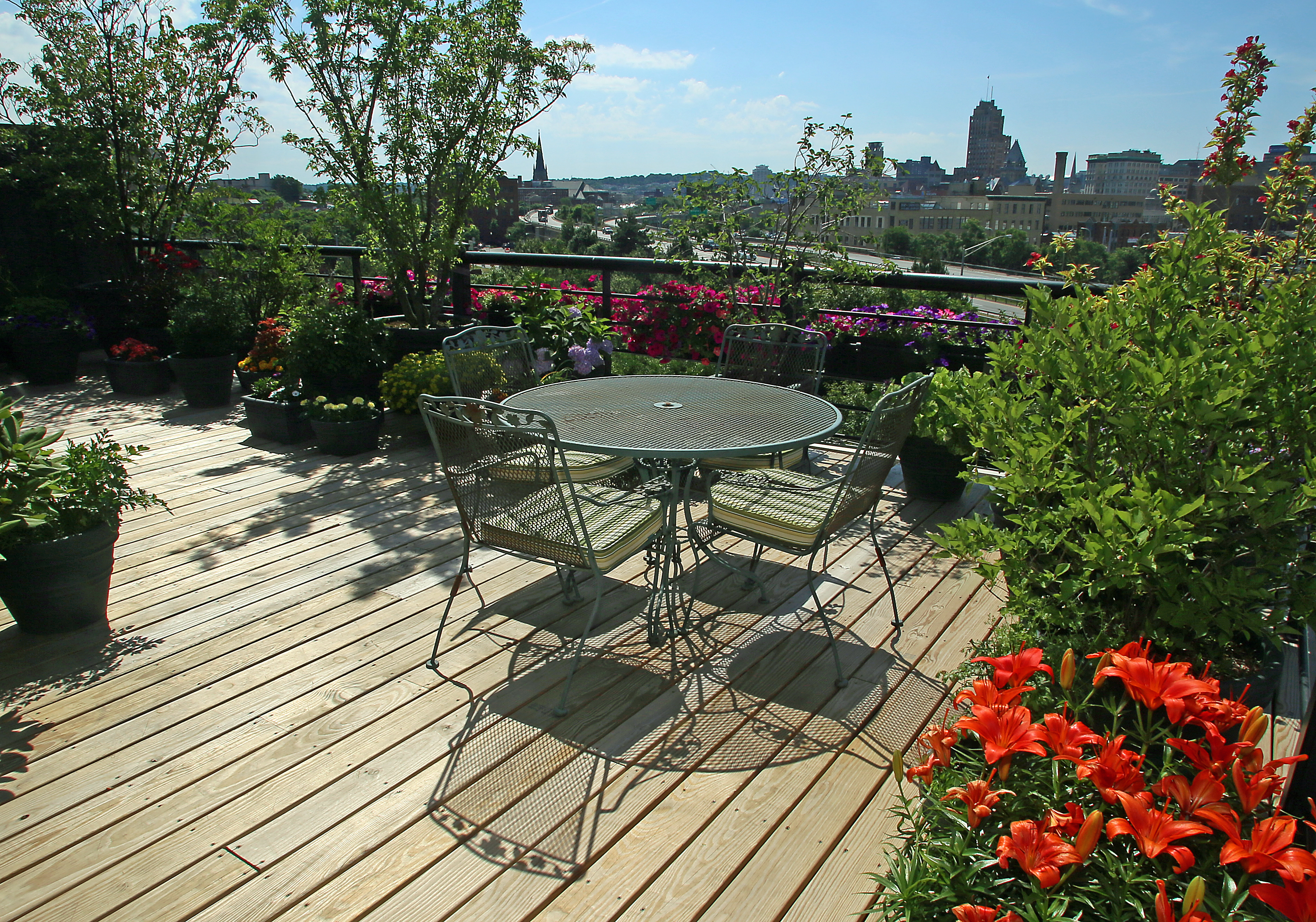 The roof-top deck faces south, giving the Goodmans views of both the sunrise and sunset.