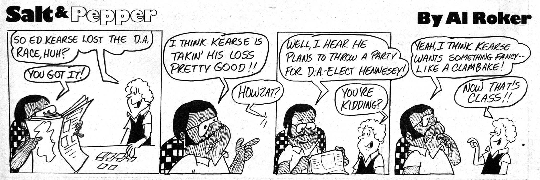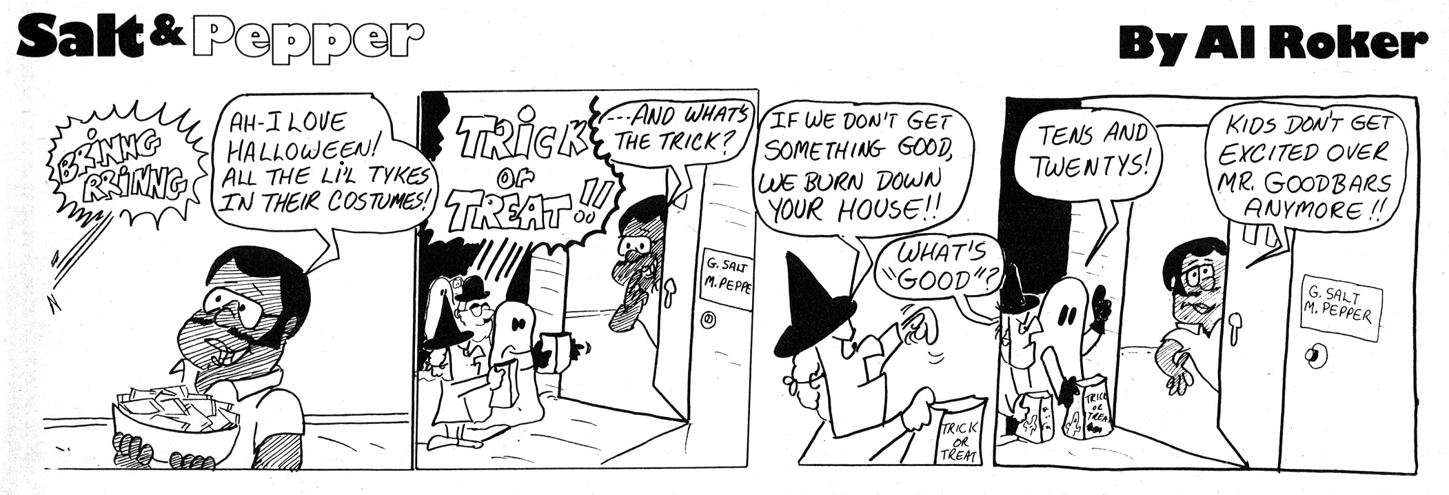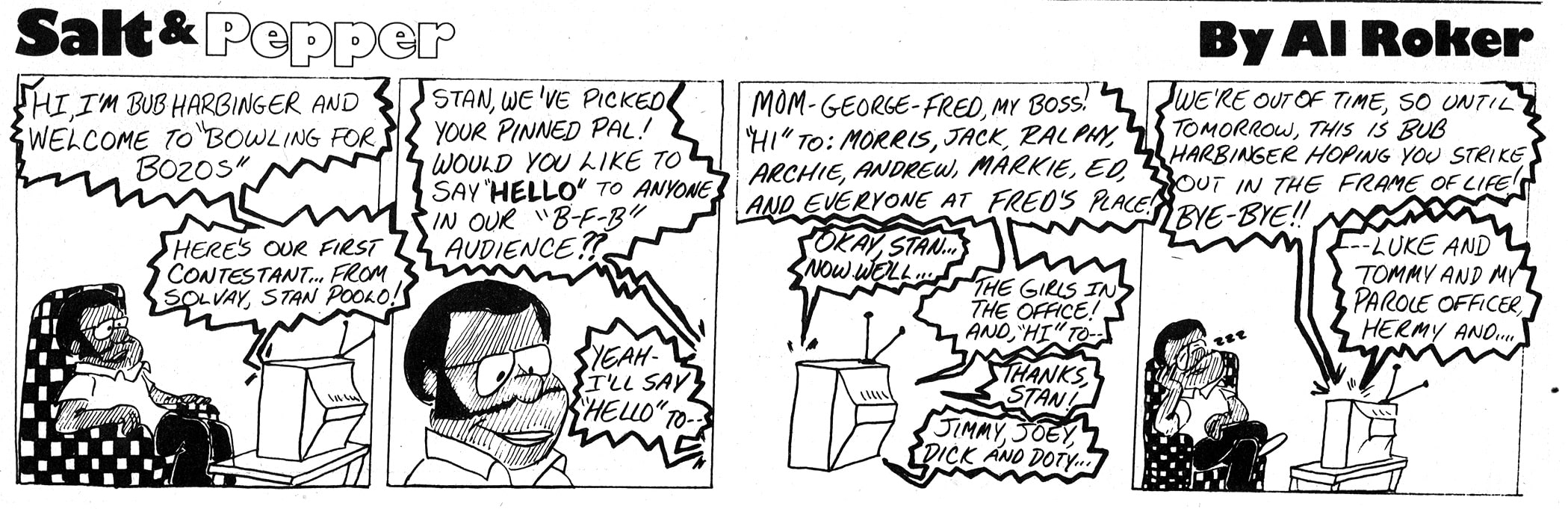Beyond the sometimes spicy seasoning of “Salt and Pepper,” however, Roker’s New Times’ stint was short and sweet. Roker drew just 10 strips before pulling the plug on his characters, as he pulled up his Syracuse stakes at year’s end to head for major-market status at a TV station in Washington, D.C.