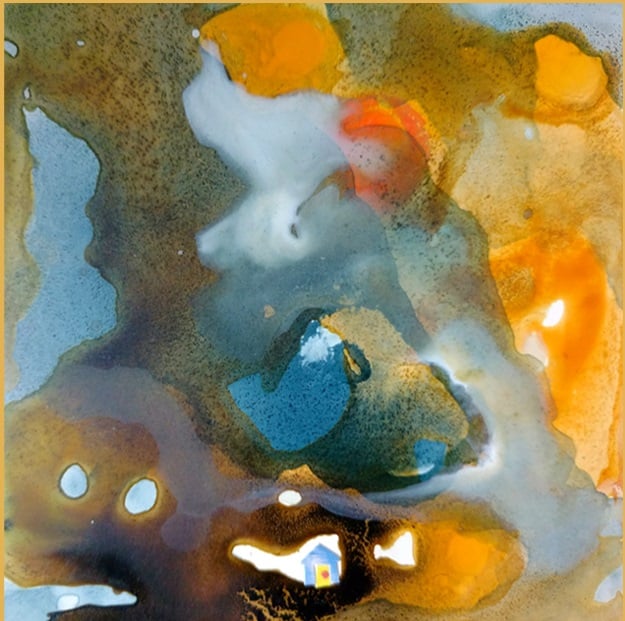 Other works reflect the series’ depth. Bartell moves from “Salutations,” with its mix of colors, to “Tidal Waves,” highlighting orange, from “Memory and Its Ghost,” portraying a sky dotted by small shapes, to the stars illuminating “Calliope Sky.” Every piece has a small house at its bottom border, but that’s a recurring motif, not a way of surveying Provincetown architecture.