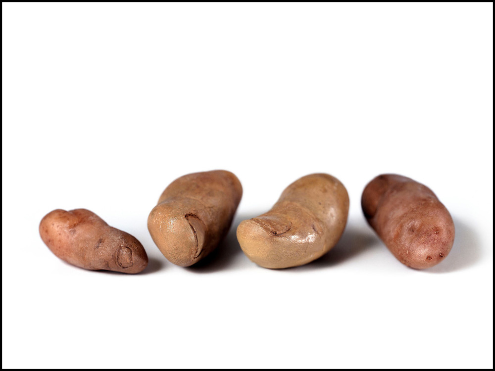 When she decided to do a project centered on genetically modified foods (GMOs), Chin developed a fictional narrative dealing with the insertion of human genes into fruits and vegetables. Chin made plaster impressions of body parts such as lips, toes, fingernails and teeth, then attached them to actual foods.