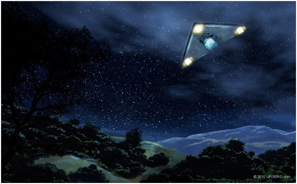 The other family members looked up and they all saw a triangle shaped craft appear out of virtually nowhere out on the horizon. As the craft drew closer to their neighborhood the lights on the whole block began to flicker more rapidly. As the Triangle craft moved over the block the lights flickered out completely and the whole block was dark. Mark tells us that it was perhaps only about 500 or 600 feet above the neighborhood houses. The craft was reported to be the length of a football field and appeared to be at least two stories think.