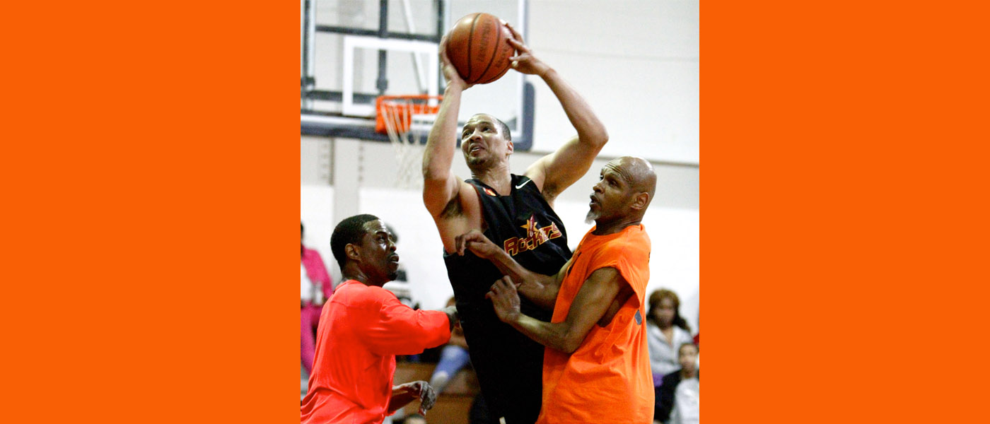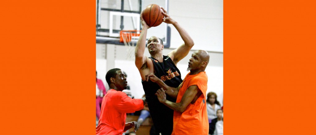 This season’s opener, earlier this month, displayed the Baby Boomers’ tradition of keeping it funky, as behind-the-back and no-look passes proliferated, and Keith Rowser set up almost on the 3-point line to launch his free throws. Missing elements of the competition’s cultural expression were the raucous crescendos boomed from the sound system of DJ Joe Parks during pre-game, half time and time outs, and the sumptuous soul spread from the kitchen of Marisha Heard.