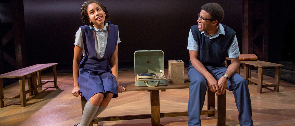 Neither Sunny nor the other students at the school are deprived. Her only parent might be her father (baritone Robert McKay again), but he’s an OB-GYN medico. She and the boys include music in their exchanges, starting with a vintage, portable 45 rpm turntable. Sunny speaks her preference for lyrical folksinger Joan Baez and anti-Vietnam War protest songs. Kaleb might be no supporter of the war, but he considers her ignorance of black musical idiom as personified in, say, Sonny Boy Williamson, to be cultural heresy.