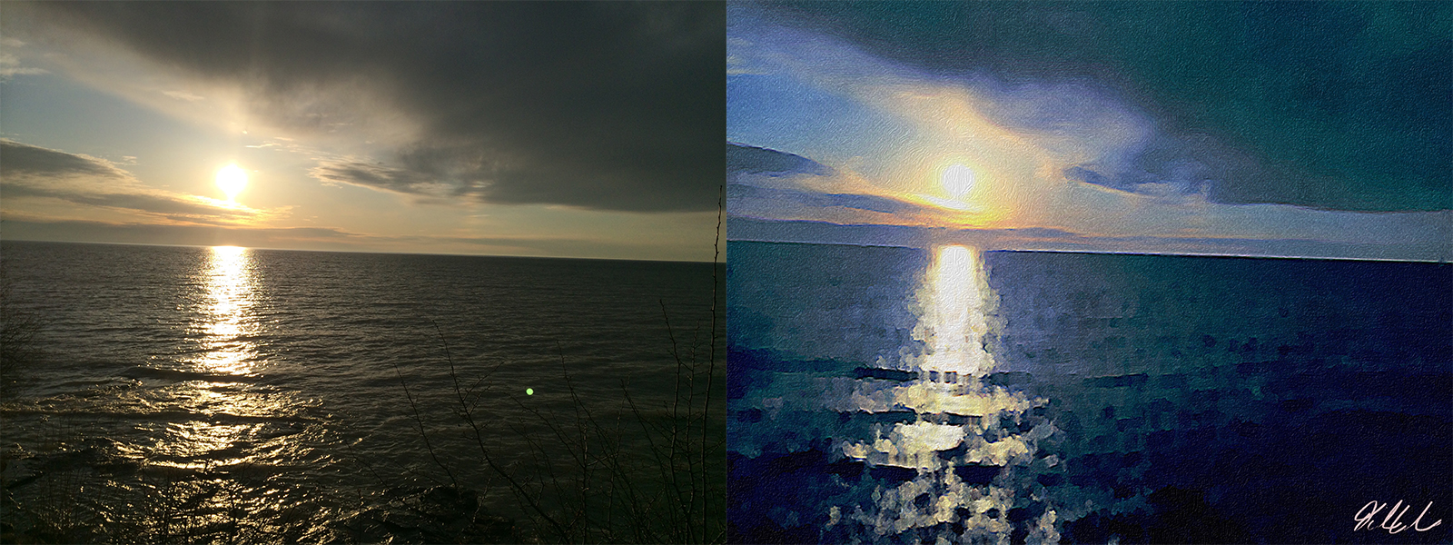 Before (left) and after (right) upon manipulation using the Brushstroke app. Notice the signature in the bottom right of the edited image.