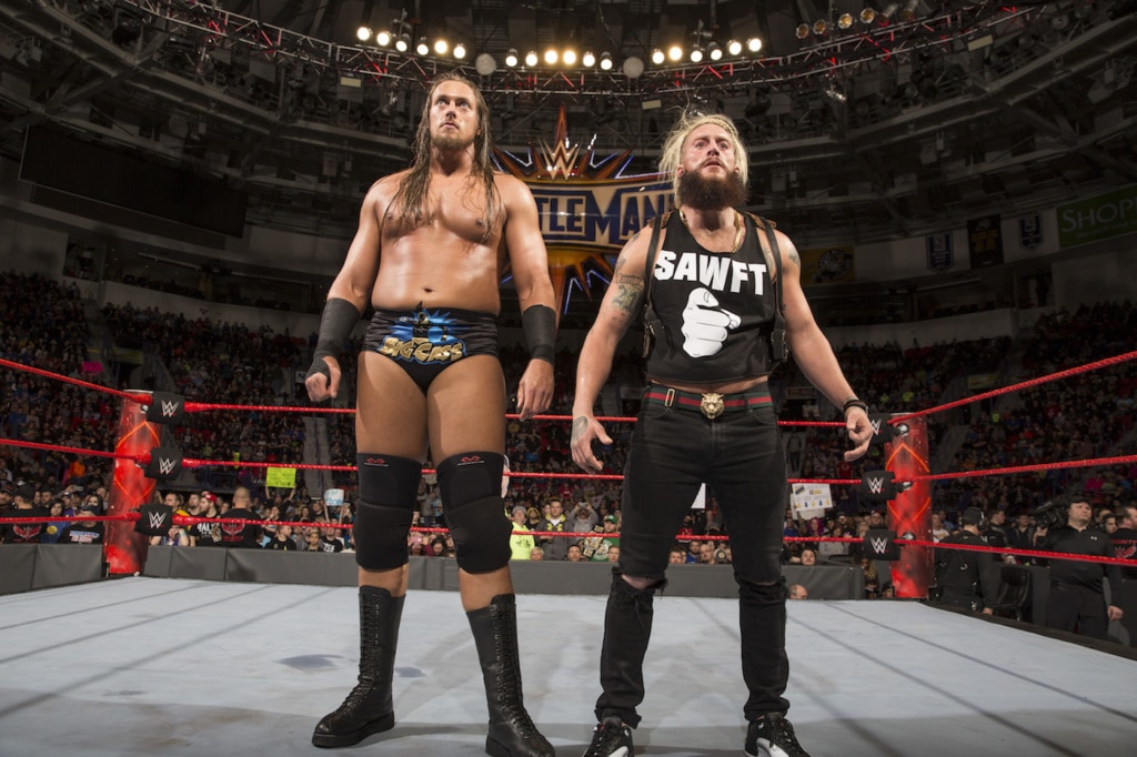 RAW Tag Team champions Luke Gallows and Karl Anderson stole the win. Amore was pinned after receiving Anderson’s patella to his cabeza, but he was cognizant enough after taking said hit to sling his foot over the bottom rope. Normally this would have qualified as a saving grace, but the referee did not see it and Gallows pushed Amore’s leg back onto the mat.