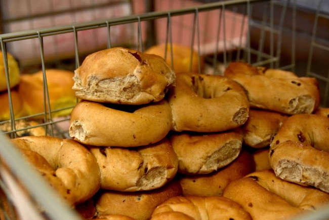 The bagel process starts the night before to plan for the day ahead. There are many factors including weather, temperature and humidity that help the bagel rise, but most important is making sure the bagel is not under or over proofed, which means it will collapse. “Depending on the day of the week, or if we have an event happening, we have about 24 racks of bagels that need baking, which is over 500 bagels,” Wicker said. “Our oven in the back only holds six trays, so we really rely on the help of our nine other employees to prep the bagels once they are done.”