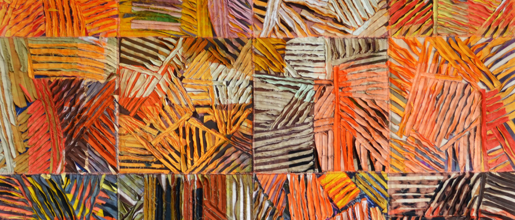 And Tammy Sutherland’s “Untitled Fragment # 1” recycles pieces of cloth from various projects. Although it has ragged edges, this isn’t an unfinished piece of work. It’s an interesting piece that focuses on fragments and poses a question: Doesn’t every quilt begin with fragments?