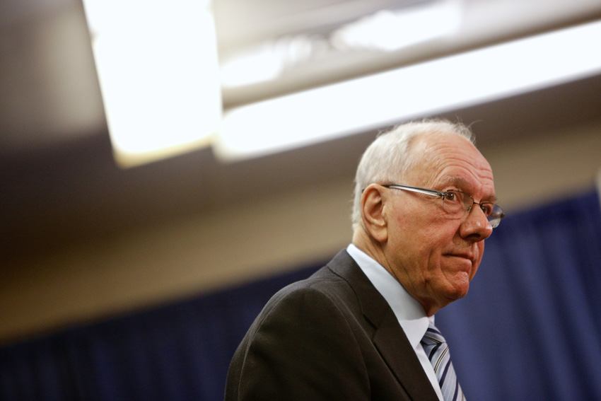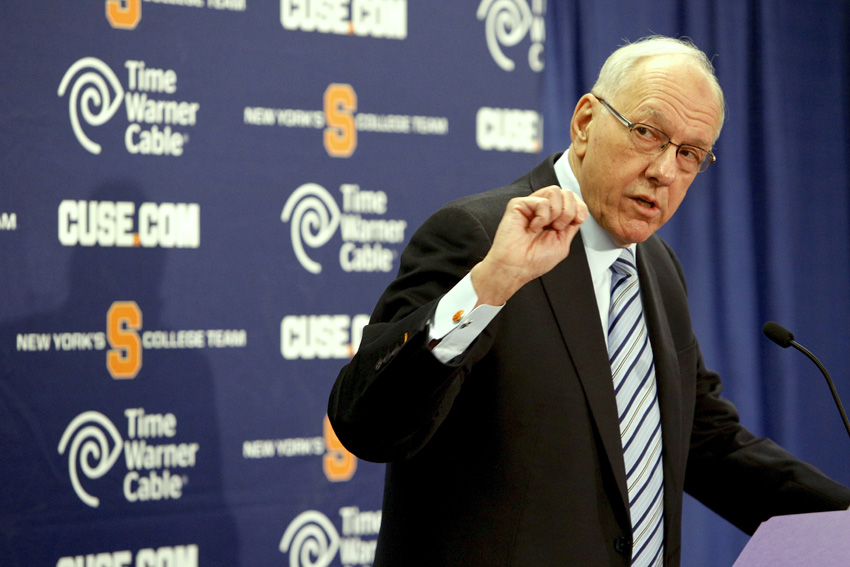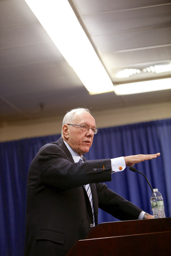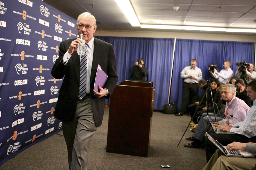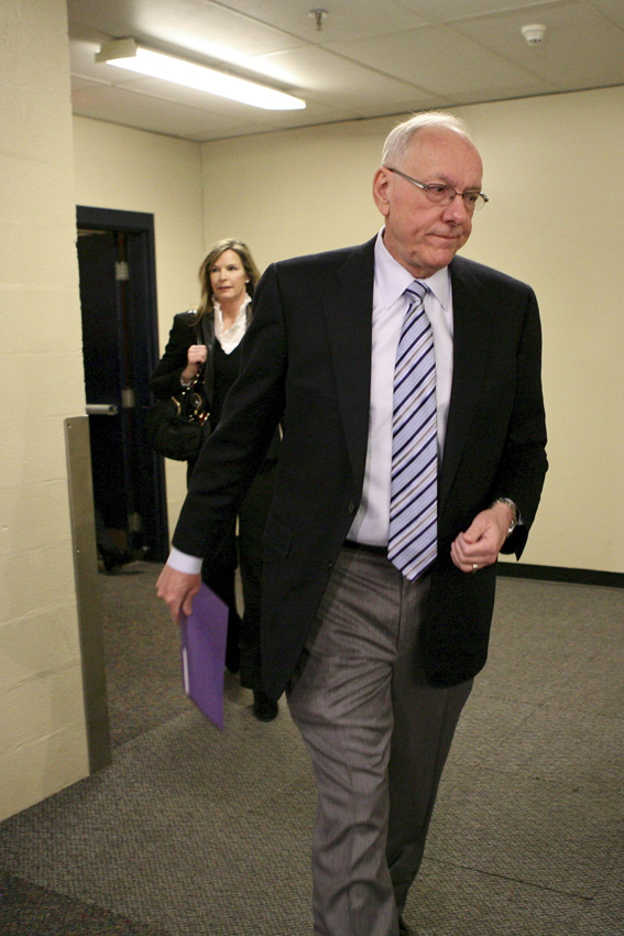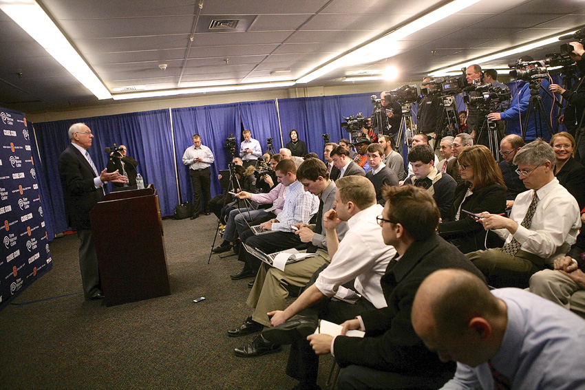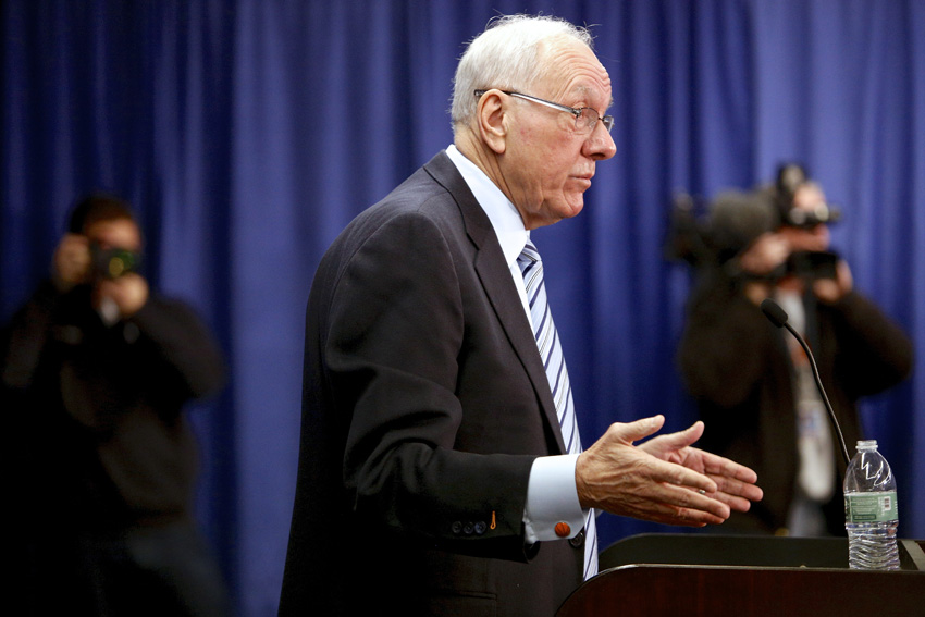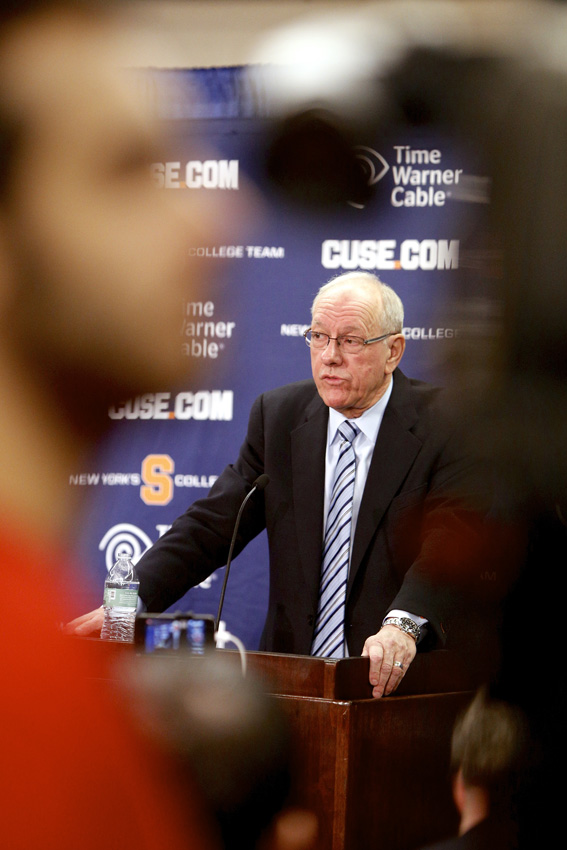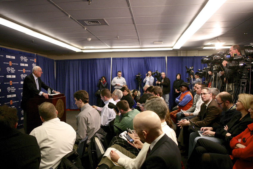 Syracuse New Times photographer Michael Davis attended a press conference with coach Jim Boeheim on Thursday March 19, as the coach made his first public appearance since the NCAA report and Syracuse University’s announcement that he would retire in three years.