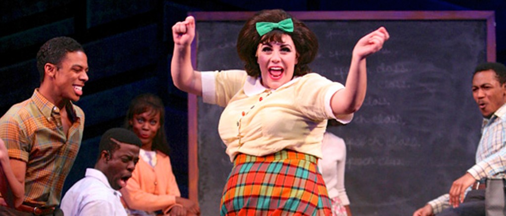 In his quest for quality, Fennelly has imported only five Equity players for the 29-person cast, including Mary DiGangi as Tracy and the splendid Aurelia Williams as Motormouth Maybelle, the powerhouse record store owner in the Negro district, who wows with the first act’s finale, “Big Blonde and Beautiful.” Elsewhere, students fill a generous number of roles with lengthy moments in the spotlight.