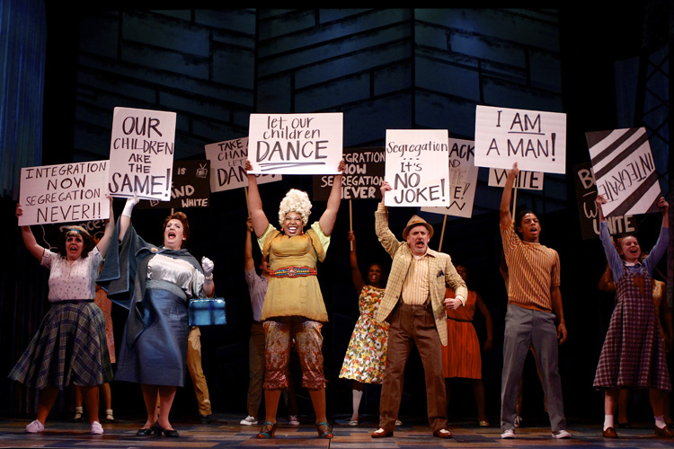 The title “hairspray” spoofs the now half-century-old fashion that women had of inflating the size of their hairdos, both unhealthy and unecological, and now laughably antique. In Waters’ portrayal, a gone style is equated with once dominant (if not discarded) attitudes toward race. Getting black kids to appear next to white ones on TV dance shows in a Class-D market hardly has the import of parallel struggles also occurring in 1962, like gaining entrance to Southern universities and public accommodations. Those battles don’t lend themselves to musical comedy. Instead, the show takes on the issue in miniature by recognizing the African-American art form of rock’n’roll. The intentions are no less serious.