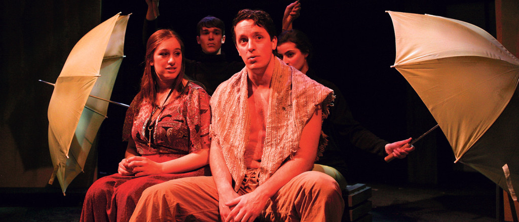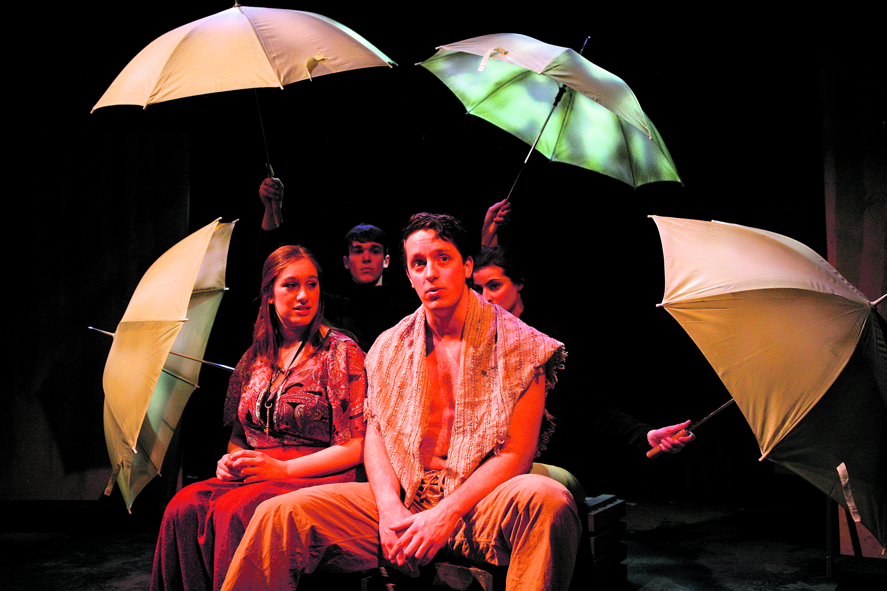 Bertolt Brecht’s The Good Woman of Setzuan, one of the 200 most celebrated stage plays of the 20th century, is being produced the second time in two decades by the Syracuse University Drama Department. Only this time it is not on the Storch Theater stage, the usual venue, but is instead presented upstairs in the Loft Theater, a black box. The smaller space, which puts the action in the faces of people in the front row, evokes the kind of stages Brecht had to use while developing his influential theatrical aesthetic back in Berlin during the Weimar Republic.
