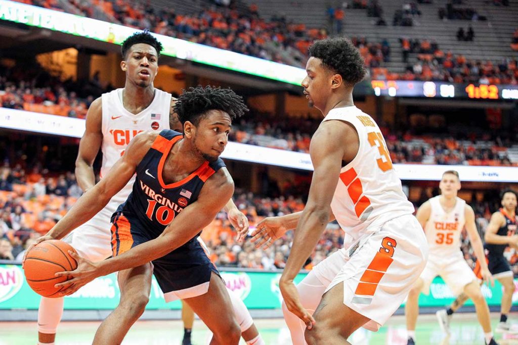 The Syracuse University men’s basketball squad looked impressive in the first half of the March 4 contest against No. 2 Virginia, with all signs pointing to an upset. Then came a boatload of 3-pointers (18 out of 25, to be exact) from the visiting team coached by Tony Bennett that quickly led to the Orange’s loss, 79-53. Among those in attendance was SU women’s basketball junior point guard Tiana Mangakahia with coach Quentin Hillsman; the junior from Australia is the first player in SU history to achieve a triple-double of points, rebounds and assists.