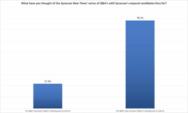 Here are the results of last week’s poll, which asked: Who are you voting for at this point in the Syracuse mayoral race?