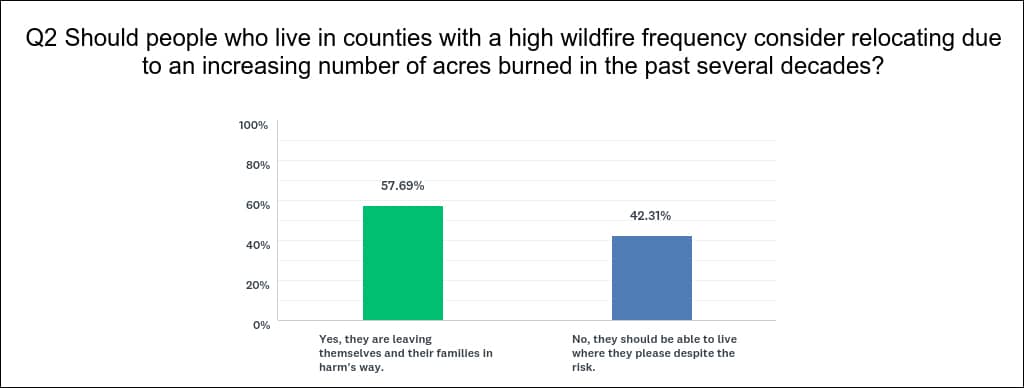 Here are the results from last week’s poll, which asked: Do you believe human activity such as pollution has contributed to longer and more intense wildfire seasons?