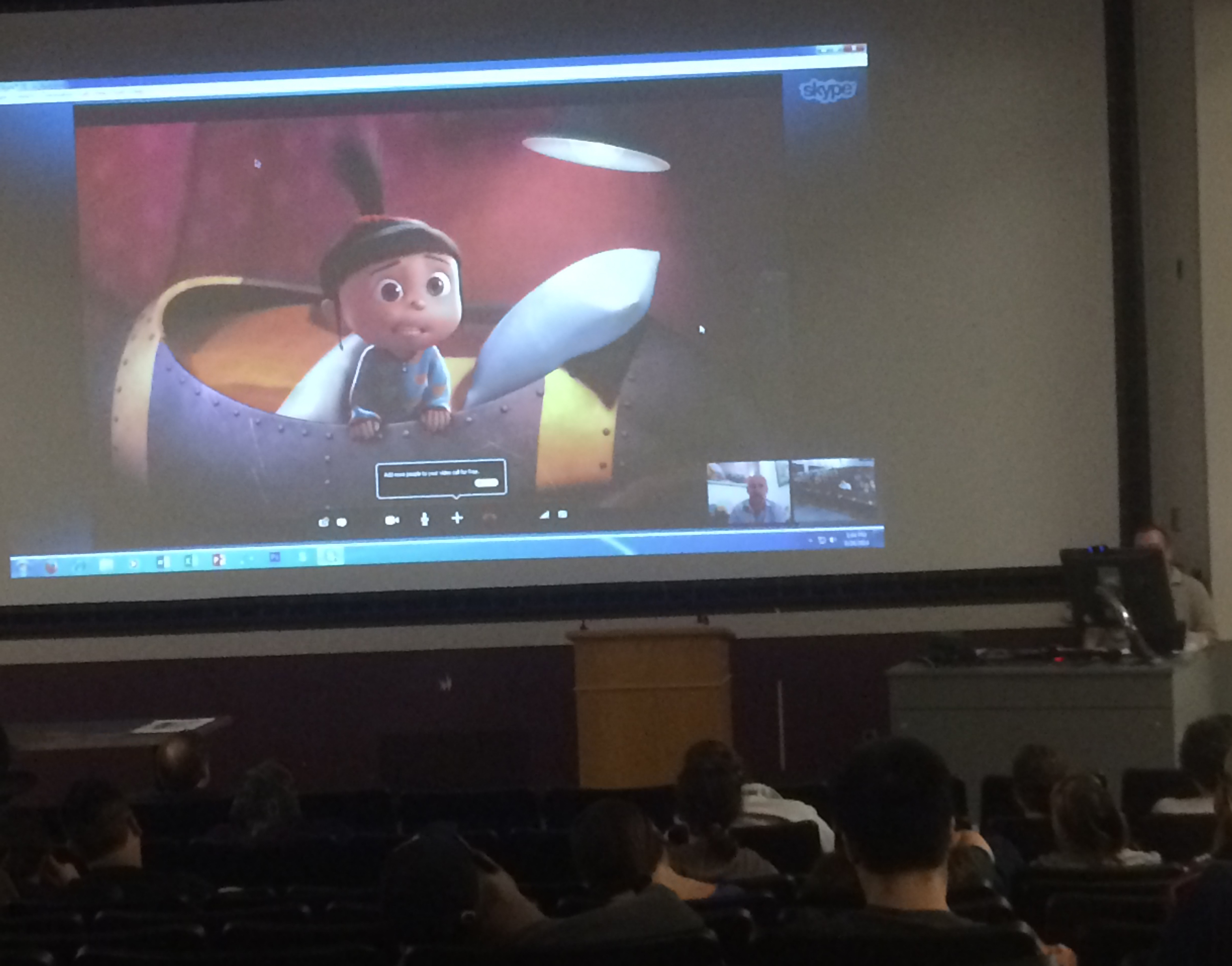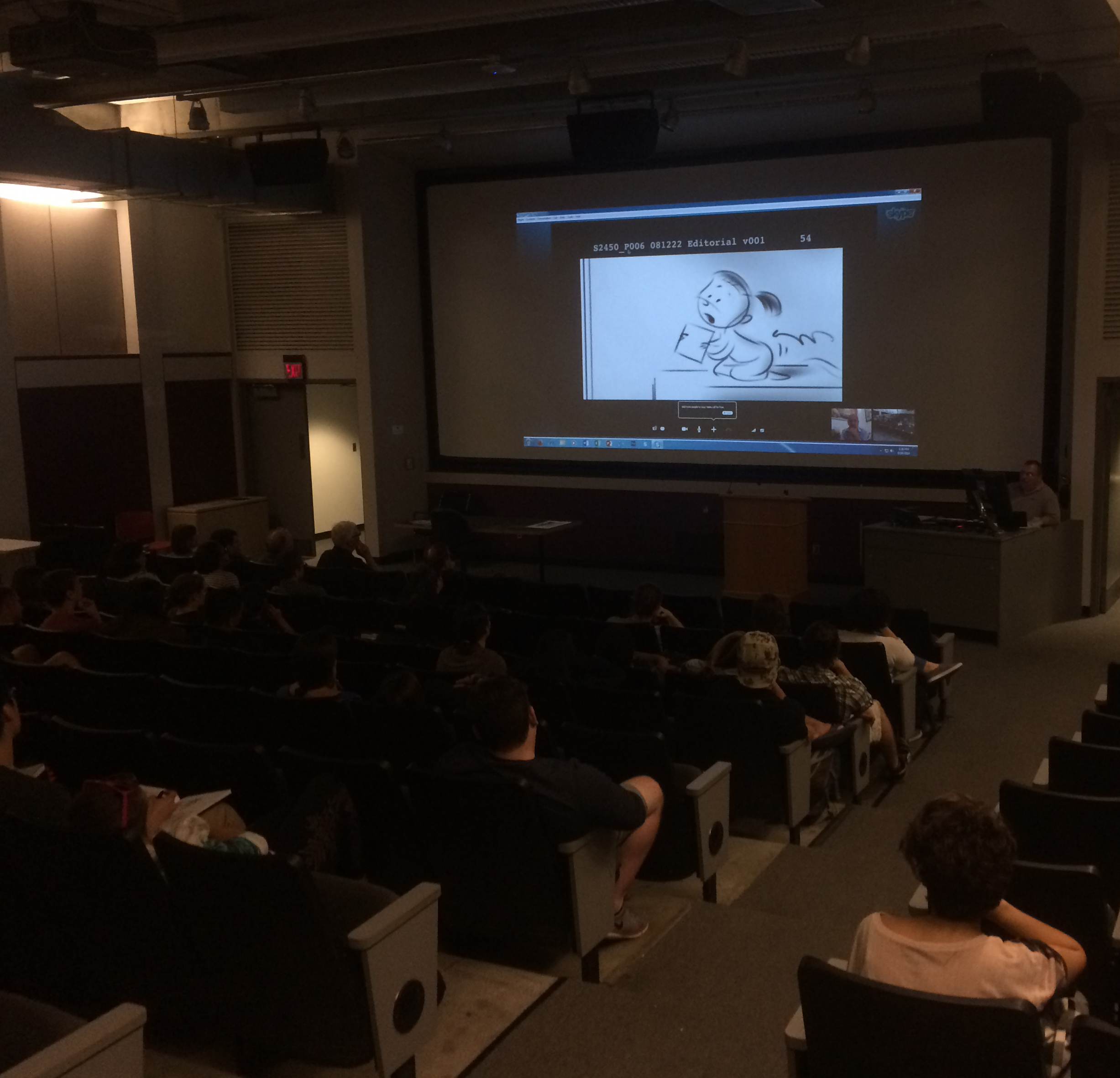 “Since then we’ve done five Skype classes,” said Coolbaugh. The professor mentioned Skype’s recently updated system has made it even easier for them to present an art class: adding the user-friendly option to share computer screens with no lag time, something the Despicable Me creator did continuously while walking the students through story boards, concept art, 3D camera, Steve Carrell recording sessions, and animation development until the final cut of the film.