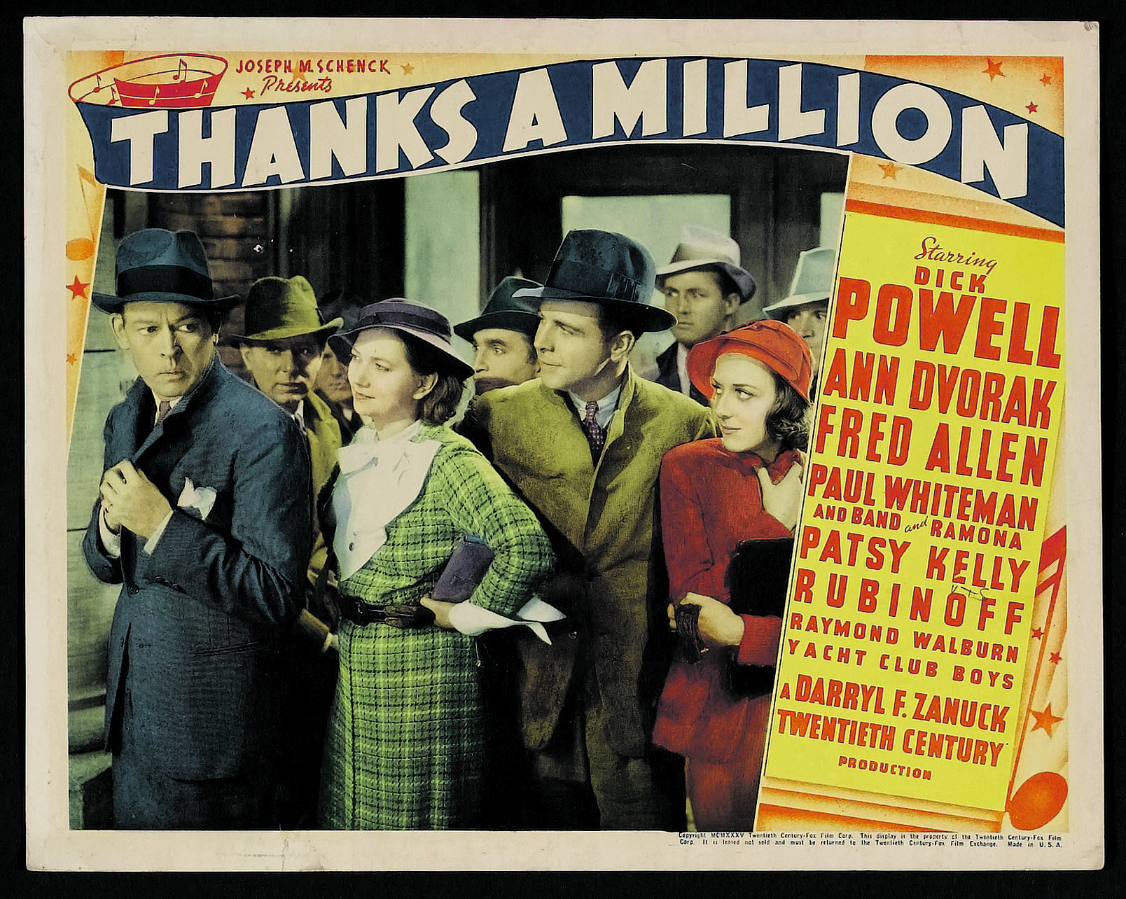 Before the 10:30 a.m. auction commences on Sunday, March 16, Cinefest will unspool Foxs 1935 musical comedy Thanks a Million (9 a.m.), with Fred Allen (the acerbic radio comedian in his screen debut), Patsy Kelly, Dick Powell (on loan from Warner Brothers), and bandleader Paul Whiteman. After the auction will be the sixth annual salute to Justin Herman, the Peabody Award-winning writer-director behind three comedy shorts from Paramounts Pacemaker series: 1948’s Musical Miracle (featuring Paul Whiteman) and Make Mine Monica (with Ed Sullivan), as well as 1950’s Sing Me Goodbye (noon). Cinefesters will get to see the late Hermans own prints of these rarities.
