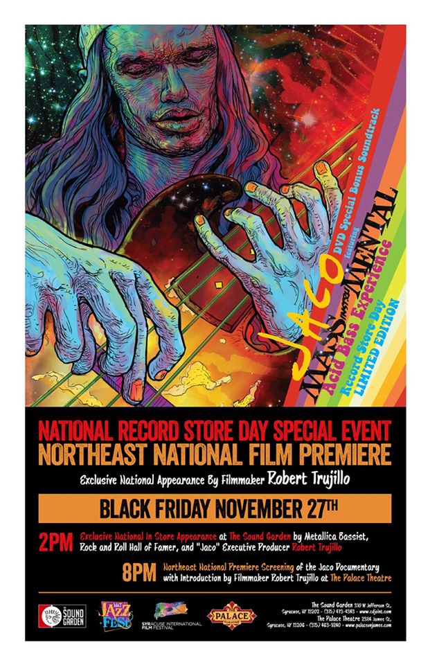A two-part special event features a meet-and-greet and signing with executive producer and Metallica bassist Robert Trujillo at The Sound Garden at 2 p.m. The screening for the northeast premiere of the documentary about acclaimed bassist Jaco Pastorius will take place at 8 p.m. at The Palace Theatre. This special event has been brought to CNY by the combined efforts of Jazz Fest, Syracuse International Film Festival, The Sound Garden and The Palace Theatre.