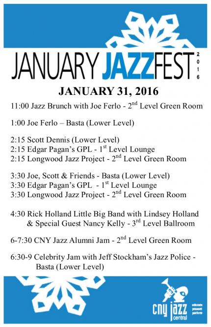 CNY Jazz presents a “Sunday Funday” in Baldwinsville. The winter jazz festival will be kicking off with an 11 a.m. brunch, and the sets will stretch out for 10 hours. There will be blues, big band, soul, bebop and more.