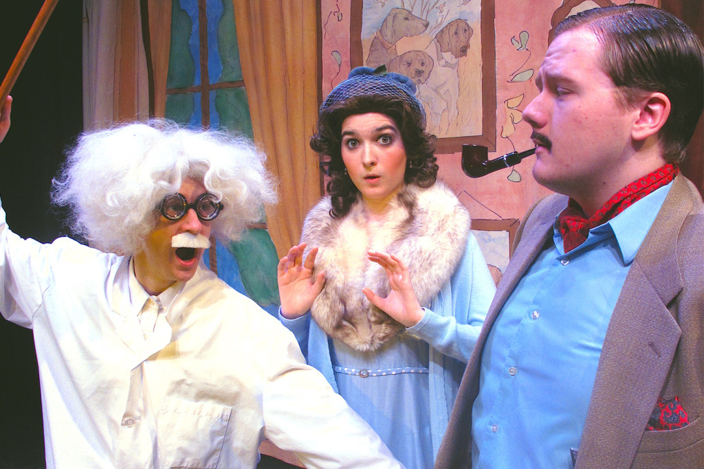 You don’t have to know much about Bulldog Drummond to get a kick out of the fast-moving British-sounding spoof Bullshot Crummond, performed by Le Moyne College’s Boot and Buskin Theatre Club.