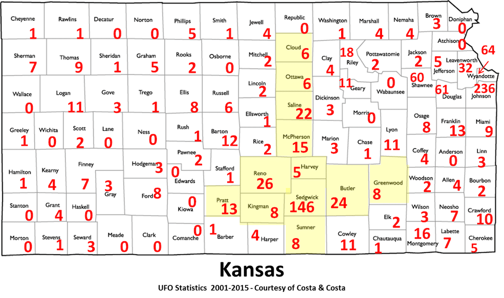 A few more facts about UFO sightings in the state of Kansas from 2001-2015: