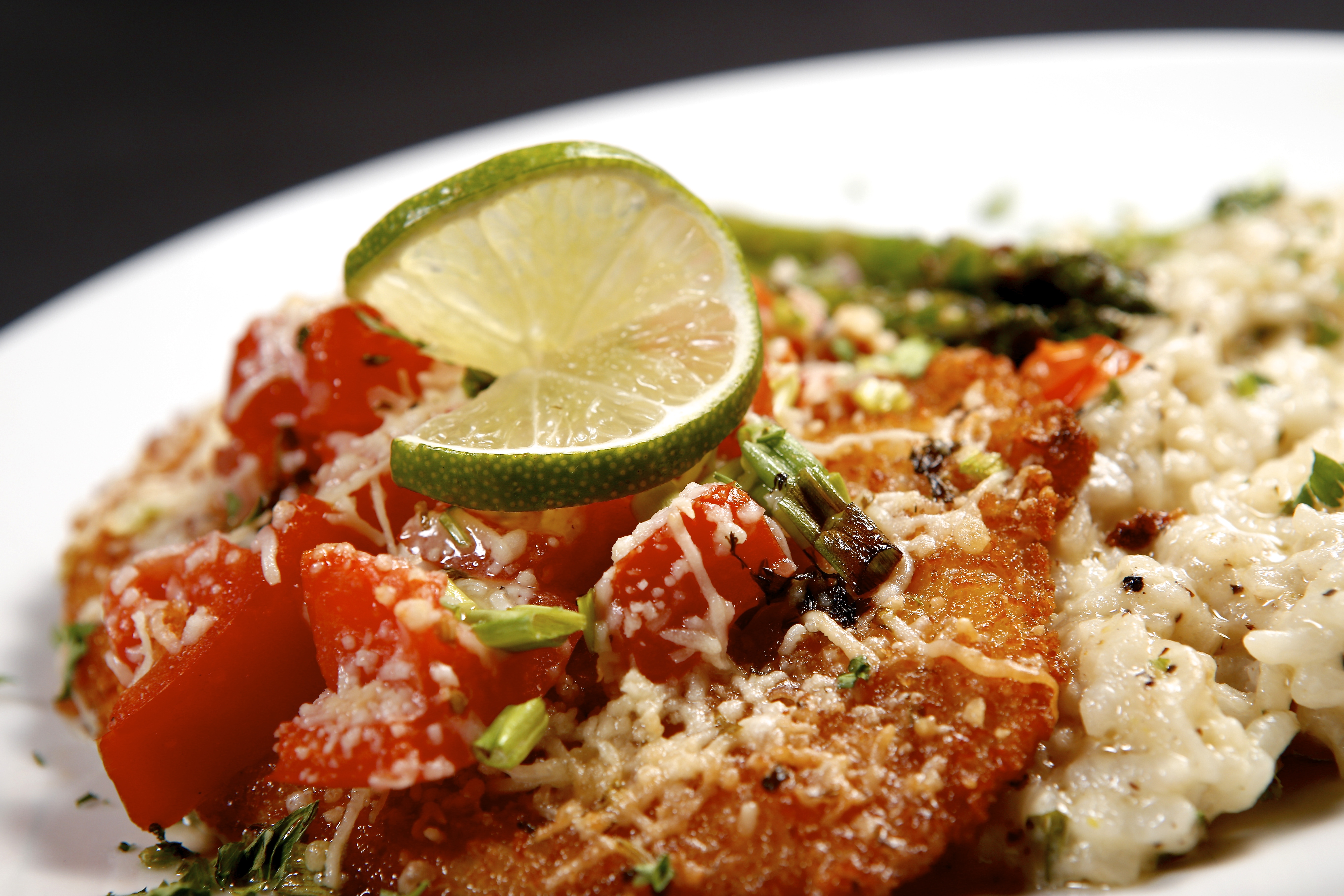 If you like the taste of poblano peppers, the ranchero chicken is for you: a cheese and pepper stuffed breast covered in a fiery cream sauce. The blackened salmon finished with a coconut cream reduction started out buttery and ended with heat.