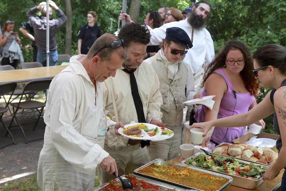During a steaming hot late-June day, Liverpool police officers stood at opposite ends of the parkway, stopping and directing traffic as the cameras rolled. The crew was shielded by hats, umbrellas and tents. The actors, dressed in heavy 19th-century white shirted and white pant soldier garb with heavy, black boots, played out scenes during multiple takes. The natural looks of exhaustion and beads of sweat saved the makeup artists some time.