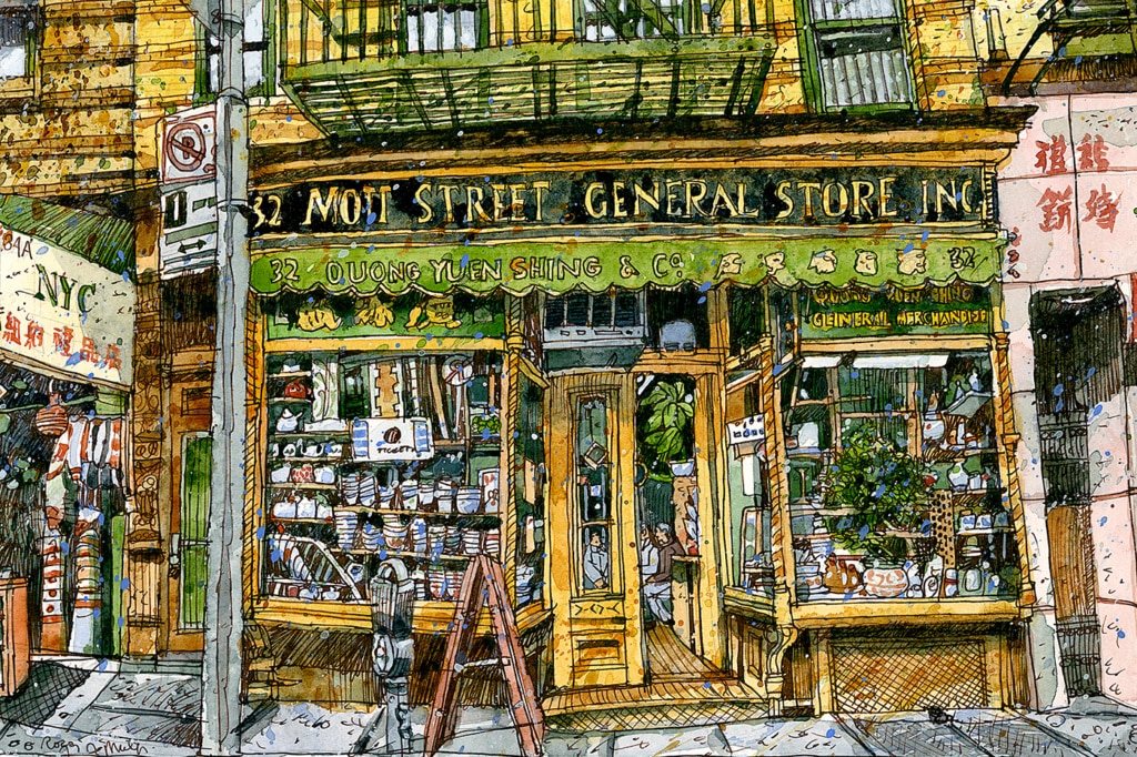 Roger Demuth’s watercolor and ink paintings depict locales in Portugal, New York City, Italy and Charleston, S.C. The pieces document his attention to detail and flexibility in dealing with varied subjects.