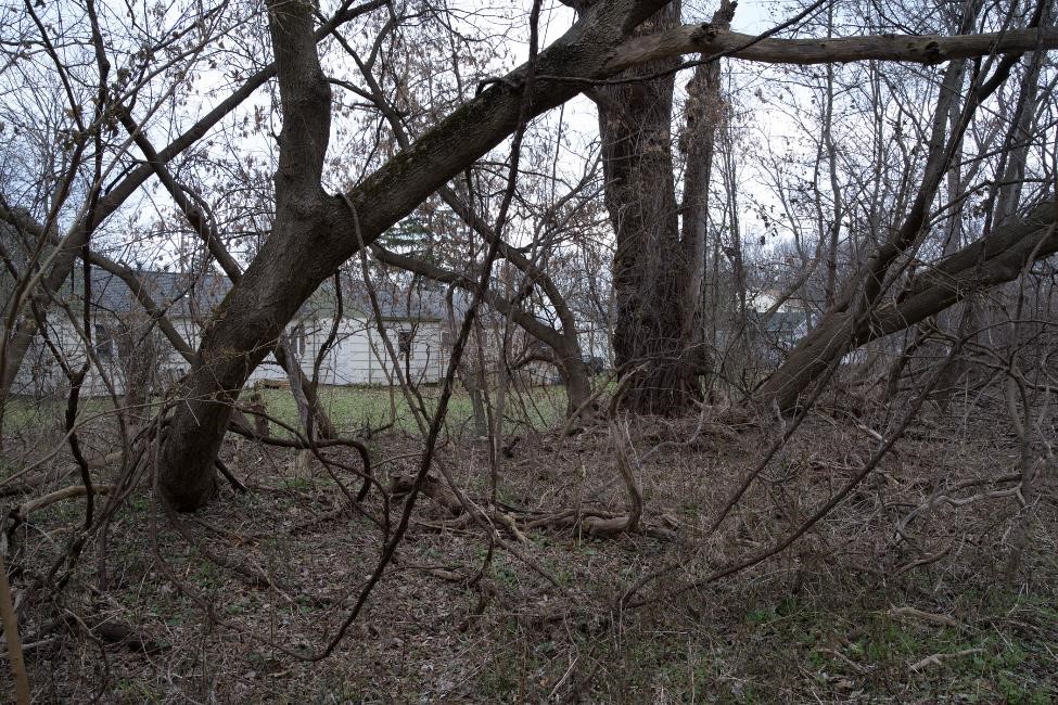 Other works follow drastically different paths. Willson Cummer’s photograph “Canal Landing 919” documents woods right behind backyards, referencing an uneasy coexistence for nature and humanity. In creating “Rain Scroll,” Peter Allen not only worked with paper and ink, he also left the scroll outside briefly to absorb raindrops.