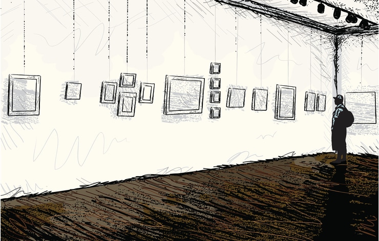 There are also radically different pieces. Avery Harris, in a mixed-media work, interprets the proposition that cockroaches will survive any disaster. A text states that “when we are no more our spirit will live in the bodies of roaches.”