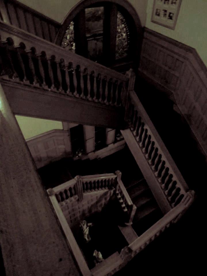 There is always a hesitation before climbing the stairs. Whether you’re by yourself or your dismissing yourself from a party. Up and out is the way to go, it’s to get away and still be able to keep an eye on everything. You can retreat back, but you can’t turn back time; driving a car in reverse will not retract the mileage. You continue up and hold the railing. Perhaps a candle is in your free hand. As the rickety creaks shriek and shadows grab at your hands and ankles, you continue. Your shadow follows, joins you on your side while plastered and dragged against the wall, or it hops out in front of you all the while curling its tempting finger.