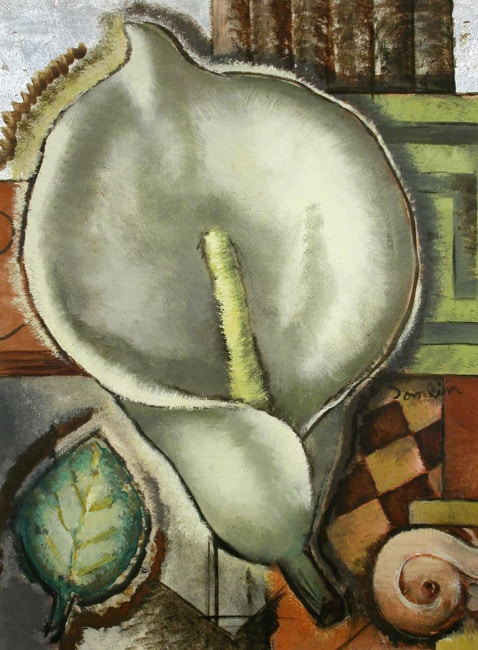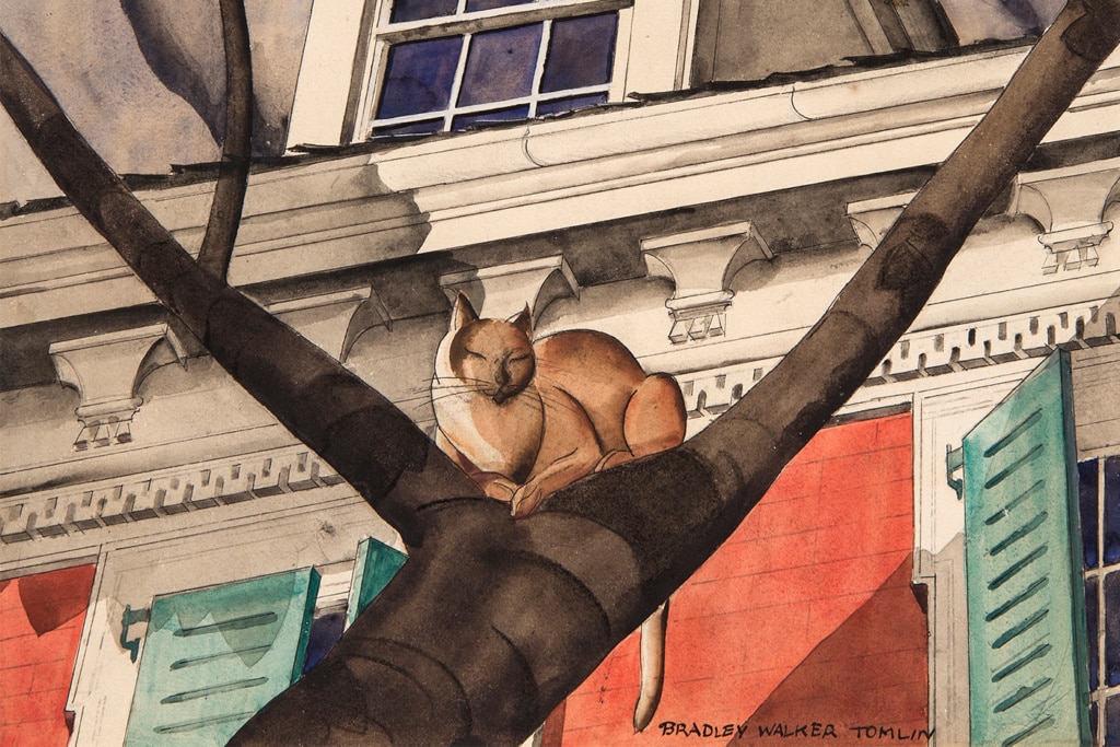 The retrospective presents works Tomlin created early on: landscapes, still-life paintings, pieces with an Art Deco flavor. For a time, he did magazine covers for Vogue, House & Garden and other publications.