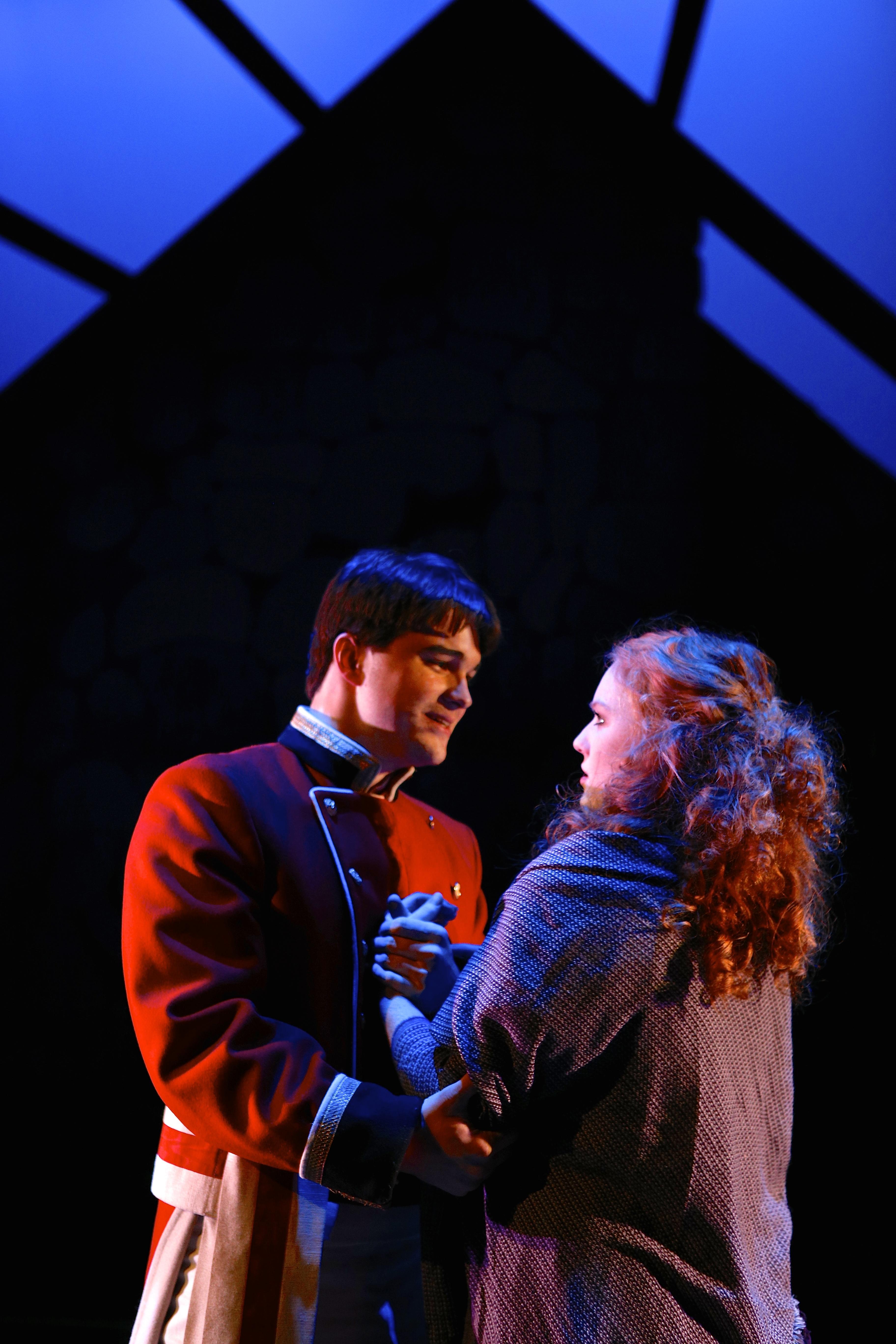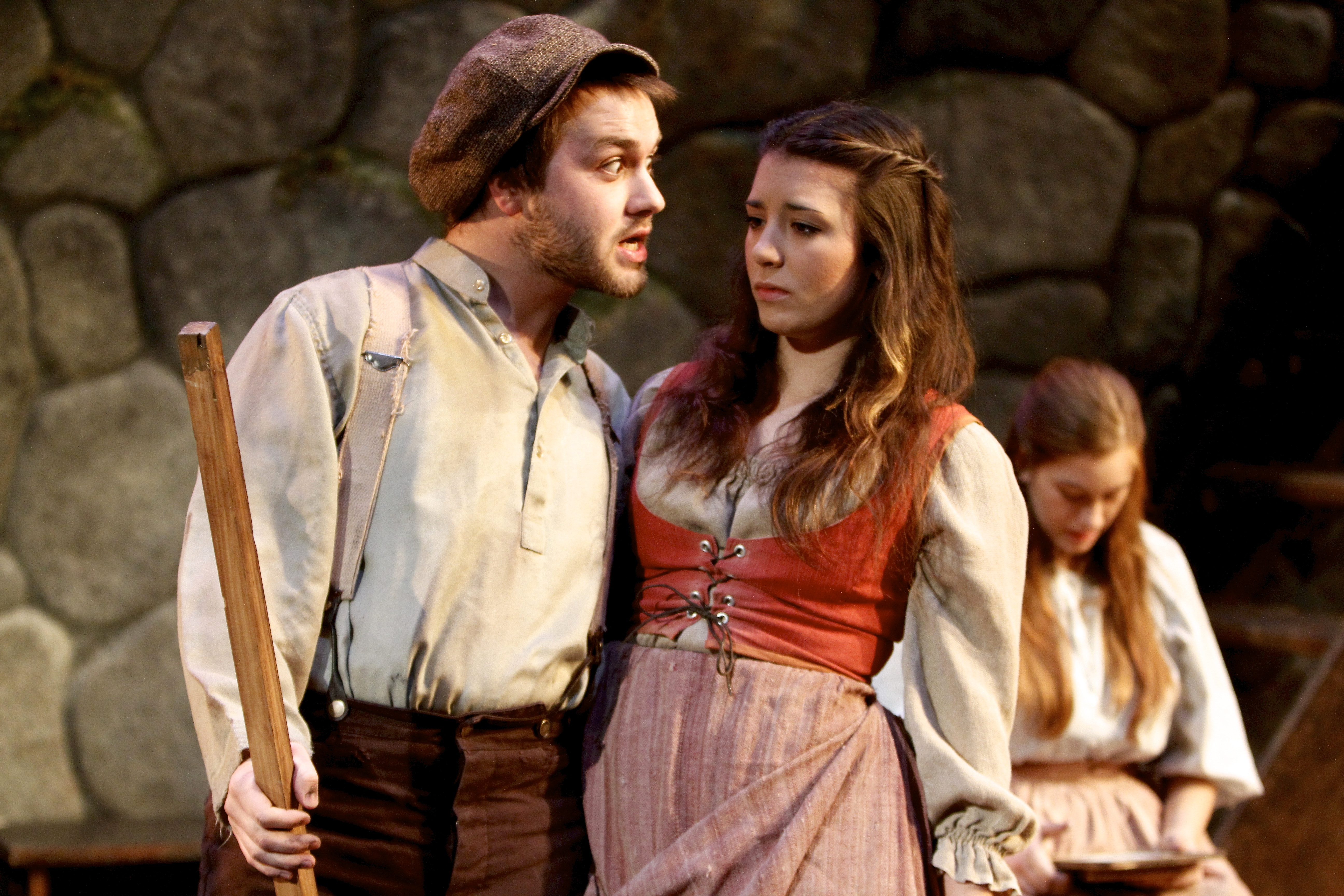 Despite Hugh’s stern rebukes when students are slow to respond, he is overall a light-handed disciplinarian in the mold of Gabe Kaplan’s Welcome Back, Kotter. Bullyboy Doalty (Tom Hayes) itches to make mischief, and brunette Bridget (Ana Marcu) makes a comely enabler. Shy, tongue-tied Sarah (Jesse Roth) can barely speak in any language, but we see her unrequited crush on Hugh’s limping son Manus (Johnny McKeown). Tall redhead Maire (Whitney Crowder), stately in her ragged clothes and scuffed shoes (credit to costume designer Nikole Moreno), knows a few snatches of an English song, which she mispronounces, but she would gladly learn more.