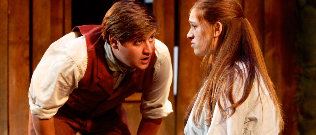 Although the language we hear is English, with snatches of Latin and Greek, Friel keeps reminding us that the native Irish speak to each other in their own language and do not understand most of spoken English. This device, while useful to Friel’s political ends, contributes to one of Translations’ most exhilarating scenes: the love duet between Maire and Yolland before the second act’s intermission. We know what they’re saying, but they cannot understand each other. Apart from the officer’s obvious masculine charms, Maire sees his language as the ticket for emigration, possibly to beckoning America.