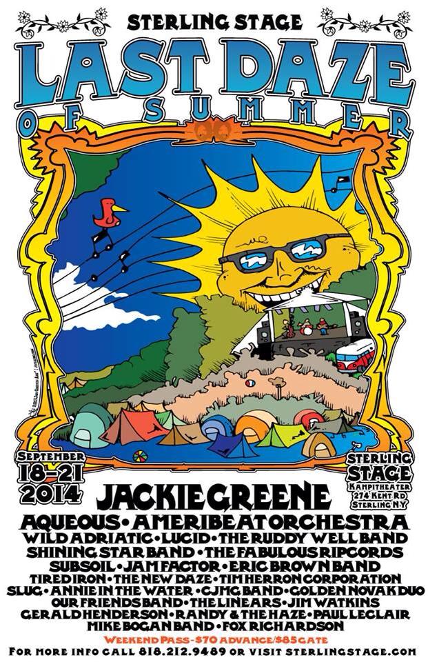Last Daze of Summer. The traditional end of summer comes wrapped up in this neat little package at Sterling Stage Kamphitheater, where music lovers gather to soak in the final days of outdoor camping and music during the Sept. 18-21 weekend. This year’s impressive lineup is headed by singer and songwriter Jackie Greene from the Black Crowes. Also on the bill: Ruddy Well Band, Aqueous, Ameribeat Orchestra, Wild Adriatic, Fabulous Ripcords, Shining Star Band and more. sterlingstage.com.