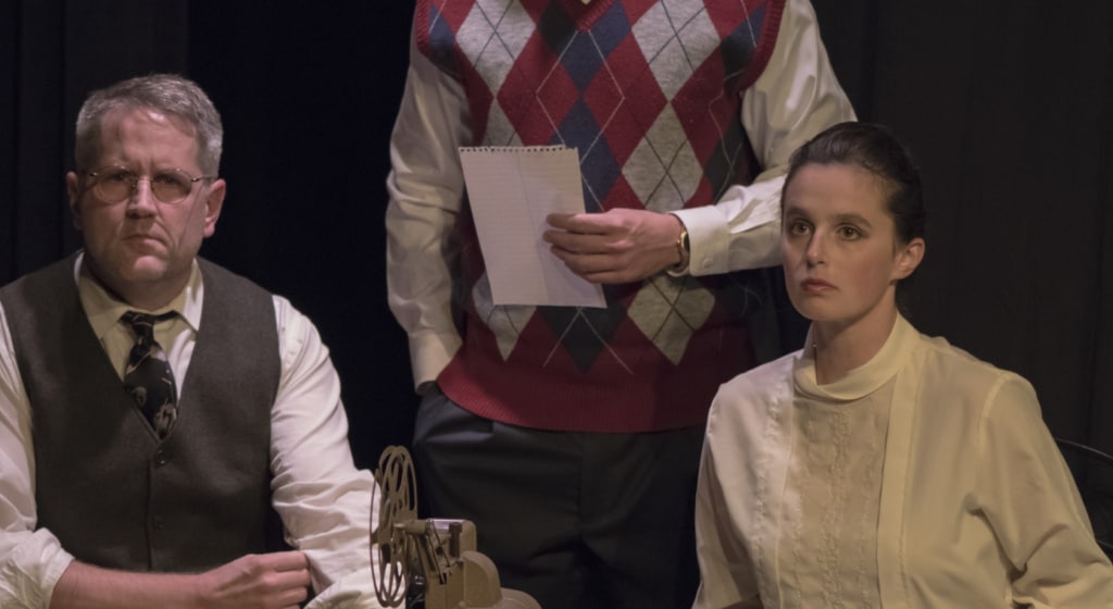 Reddin’s play is premised on the contention that Life actually kept the film in a small box the size of a deck of cards. A Life editor dying of cancer, Graham (Robert Miller), heedlessly decided to hand the package over to an attractive young secretary, Lynette (Lauren Puente), just being promoted to editor. This transaction is relayed in flashback; 30 years later, Lynette (Betsy York) is deciding what to do with such a volatile treasure.