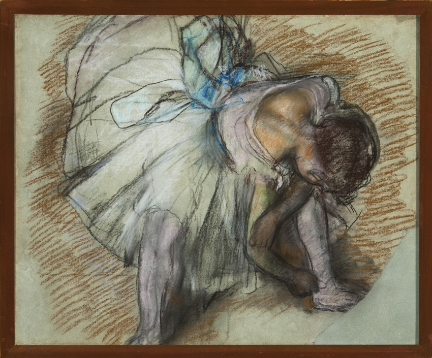 Other pieces make it clear that impressionism encompassed more than landscapes. They include Degas’ “Dancer Adjusting Her Shoe,” done with charcoal and pastel on paper, and Mary Cassett’s “The Visitor,” an elegant portrait of her sister.