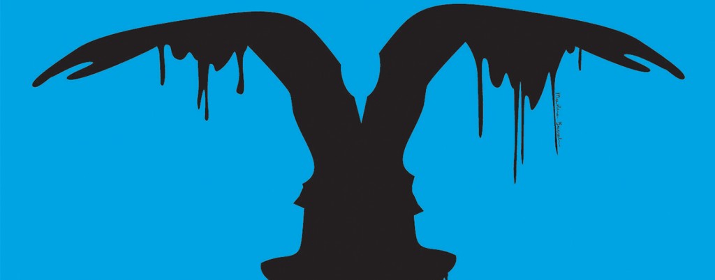 In addition, the show has a work referencing the Auschwitz concentration camp; it shows four hands grouped around a heart. And although the exhibit concentrates largely on black-and-white pieces, it does have an artwork focusing on prostitution and trafficking of women around the world. There are six figures in green, black, blue and other colors. A second piece, “Rescue Women from Violence,” merges hands and vivid black and red colors.