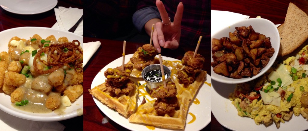 For an appetizer, the four of us shared the Breakfast Poutine — tots, NY cheese curds, bourbon au poivre, poached egg, scallions and french-fried-frizzled onions. Due to the rave reviews Modern Malt has been receiving on the Canadian dish … Well, it lived up to its expectations. The gravy was creamy and full of flavor. The egg was perfectly poached. The cheese curds blended right in for a melt-in-mouth satisfaction. If our food wasn’t coming, we would have probably ordered another round.
