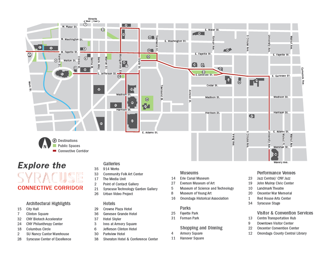 Many of the world’s arts publications now have Syracuse on their radar screen because of our call. Regardless of who is selected, Syracuse is becoming branded as a place that is serious about public art and its role activating public spaces. We’ve heard back from artists that they are interested because of the uniqueness of the Connective Corridor. They are impressed with our complete streetscape infrastructure project, and see public art as a way to engage people and move them through this new pedestrian and bike-friendly urban landscape. They like that local artists are engaged in community building. They love the mix and want to be part a rust-belt renaissance story. Syracuse is giving good vibes to the art world.
