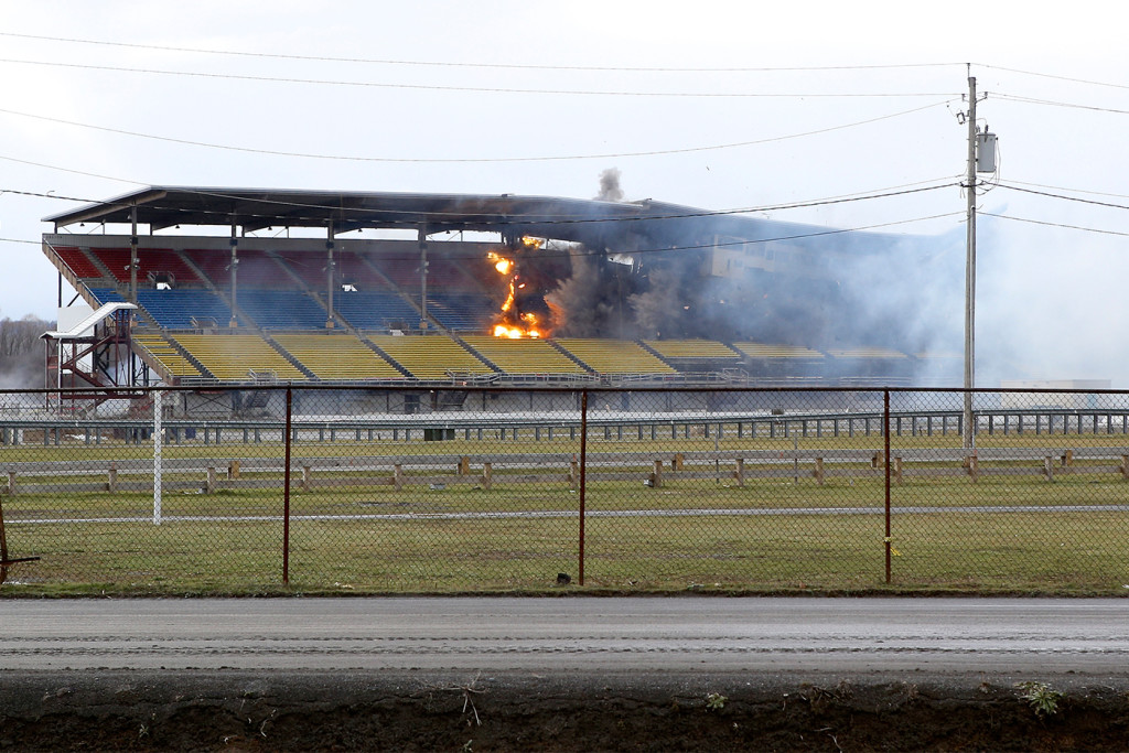 A valued component of Central New York’s entertainment legacy was blown to smithereens on Saturday, Jan. 9, when a series of strategically-placed explosives helped to crumple the New York State Fair’s Grandstand to the ground. The sound could be heard — and even felt — as far away as Bridgeport, serving as testimony to the sheer force that tumbled the multicolored mass of girders and bleachers.