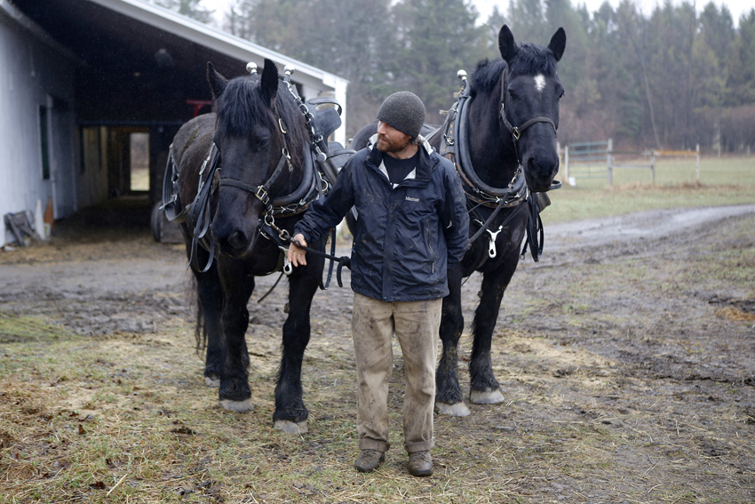 As if that weren’t ambitious enough, Volz and his crew rely on a team of strapping draft horses, Percherons named Pearl and Pat, to help them get their job(s) done. Tractors are used for some work, but horsepower cuts down on Greyrock’s dependence on fossil fuels (and expenses) and supplies the manure that is the farm’s primary fertilizer.