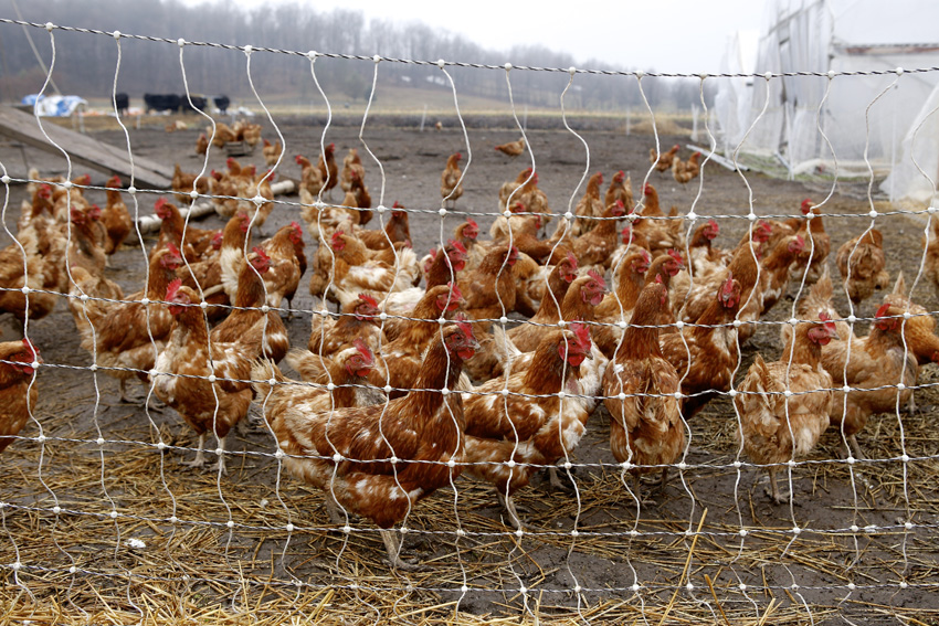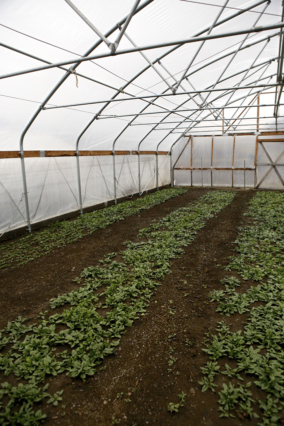 Spinach and arugula, planted in the fall, will soon be harvested from a hoophouse — an unheated greenhouse, covered with strong plastic sheeting, that lets the sun in, retains heat and extends the growing season. A second hoophouse is being set up to use as a brooder for 500 broiler chickens, arriving at the farm as baby chicks.