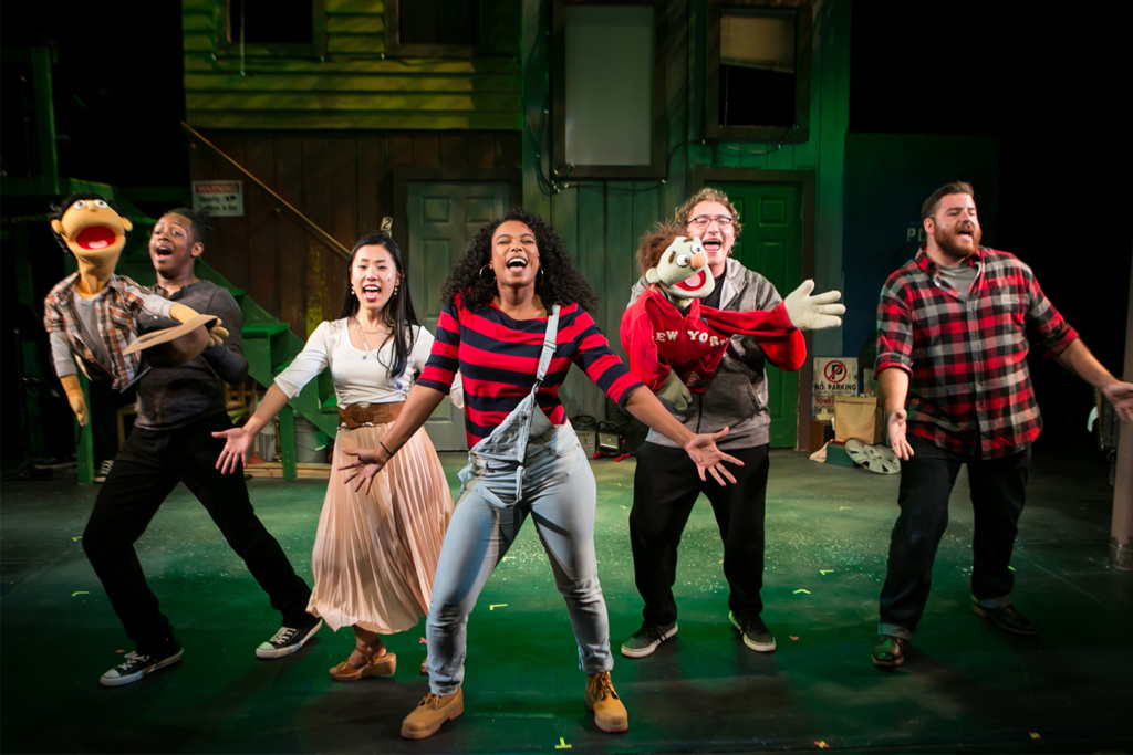 Thus the first thing that is striking about the new Redhouse production of the Jeff Marx, Robert Lopez and Jeff Whitty musical spoof Avenue Q (running through Oct. 1) is that it looks like something that could have been delivered last season.
