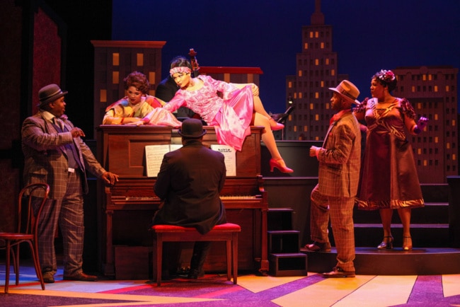 James V. Thomas’ set, with an art deco-stylized keyboard across the proscenium, lighted by Jennifer Setlow, is more gorgeous than anything Waller saw in his lifetime. Additional visual flourishes are provided by Greg Horton’s swanky costumes, which make this production of Ain’t Misbehavin’ feel like it could have easily added a number from Waller’s contemporary, Irving Berlin’s “Puttin’ on the Ritz.”